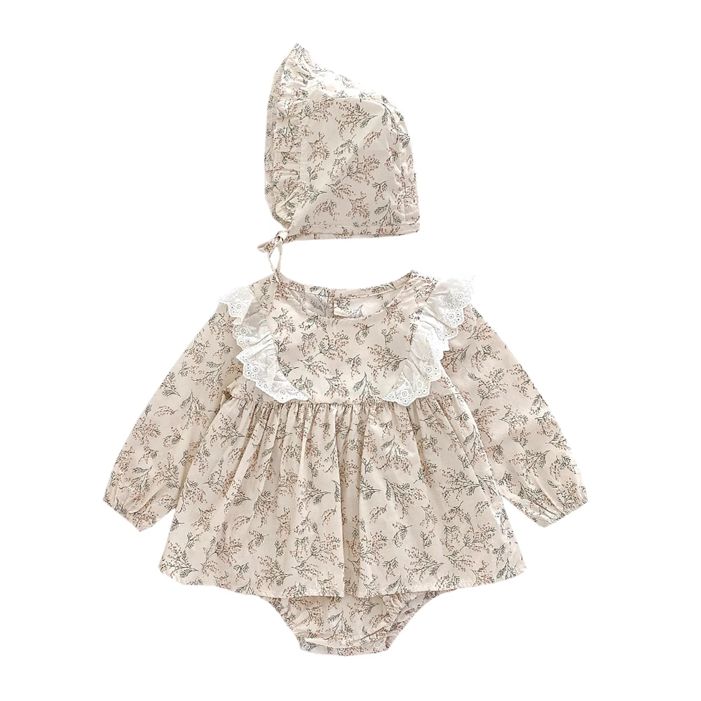 Autumn Long Sleeve Baby Girls Bodysuits Princess Toddler Girls Clothing Onesies Flower Lace Cute with Hat