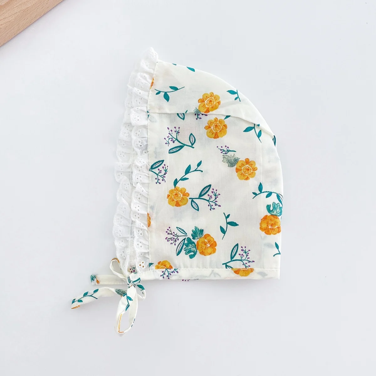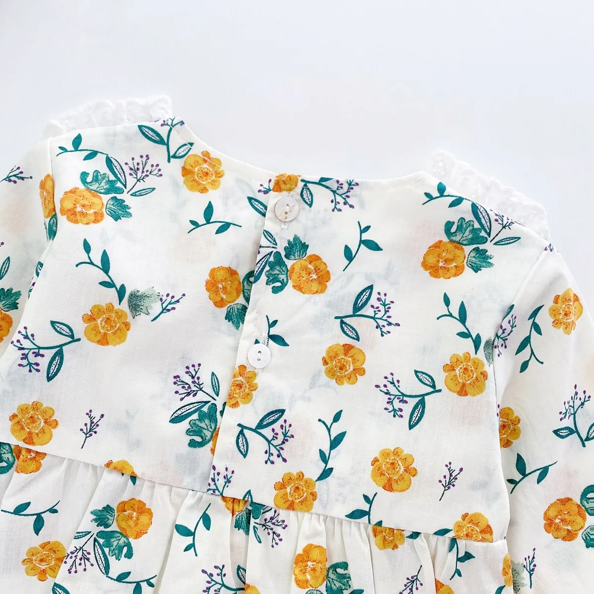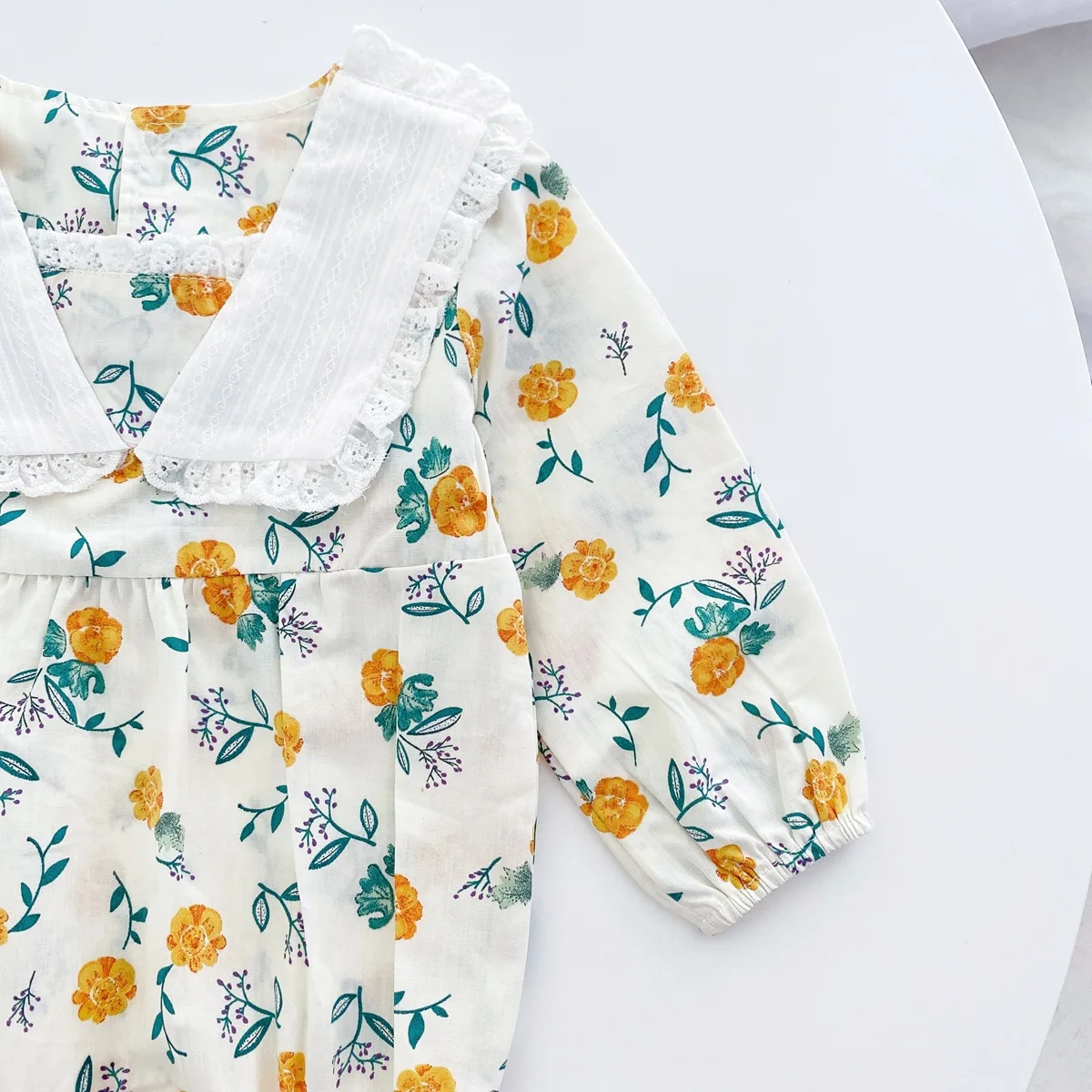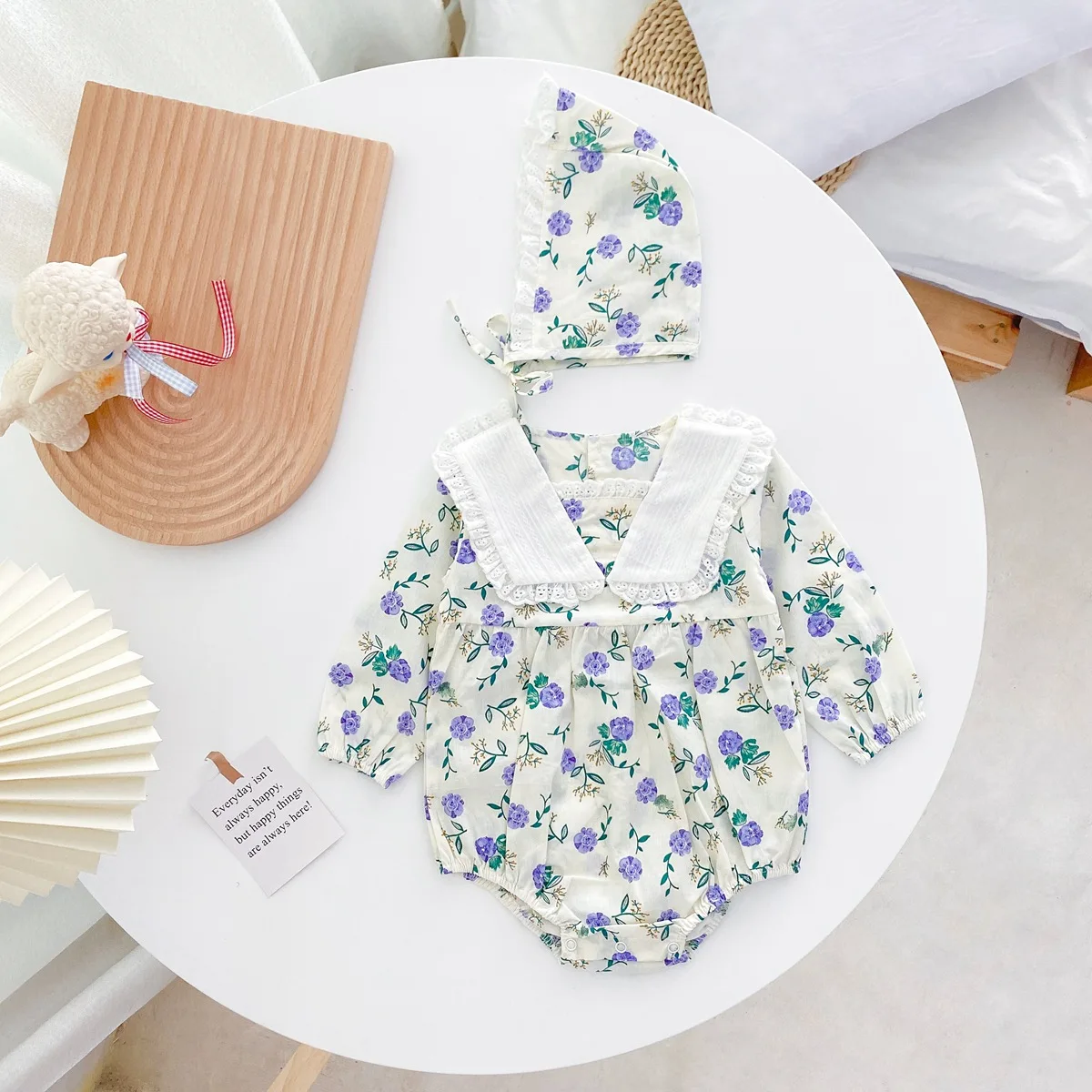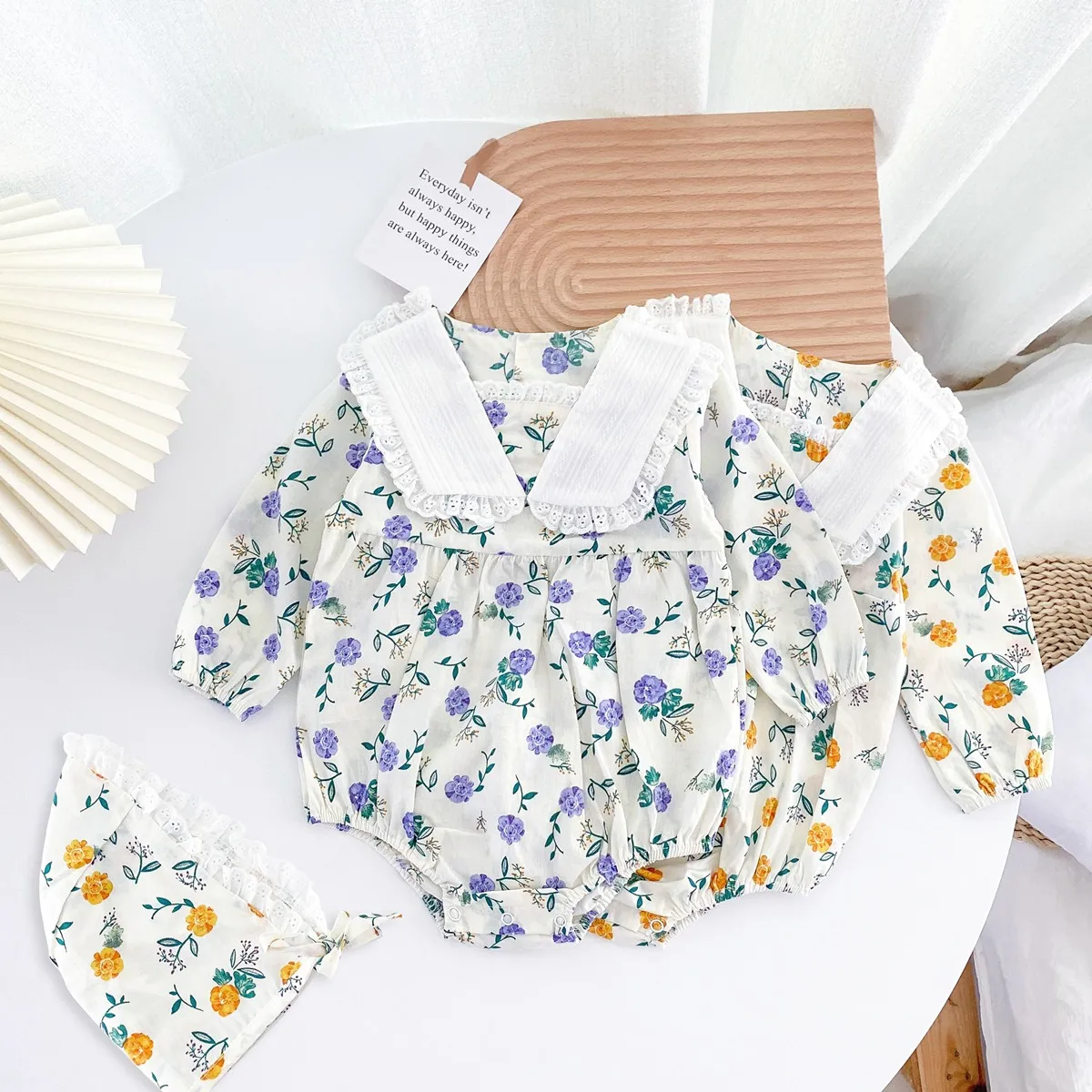 Autumn Long Sleeve Princess Floral Baby Girls Bodysuits Clothing with Hat
