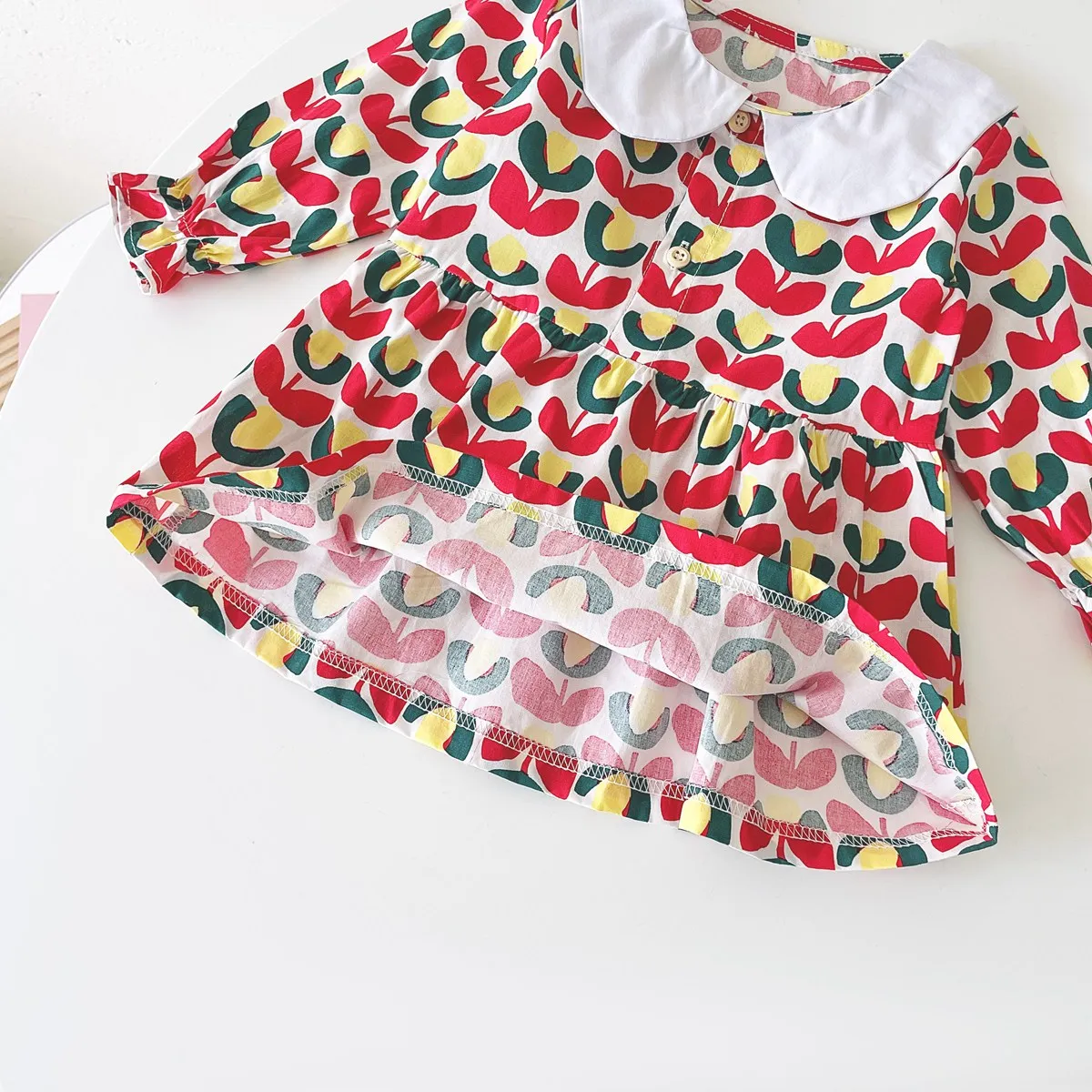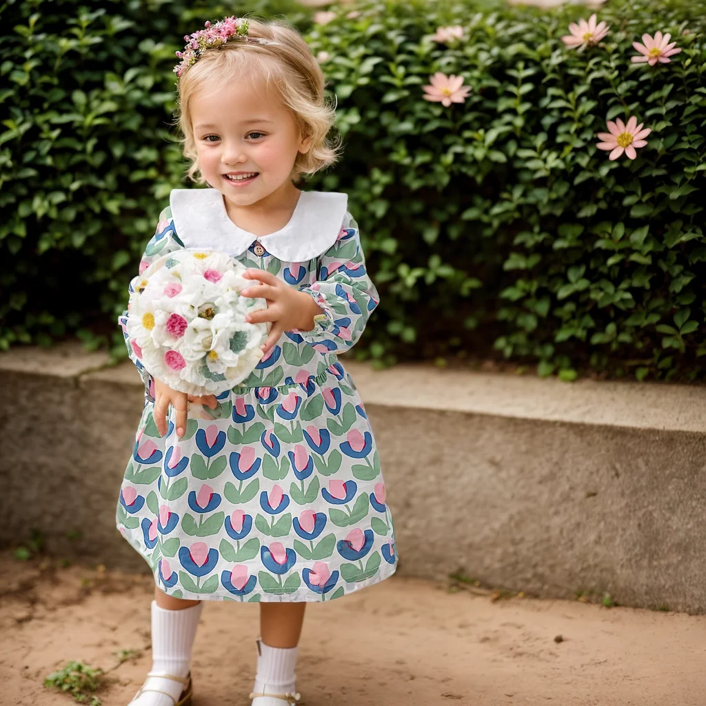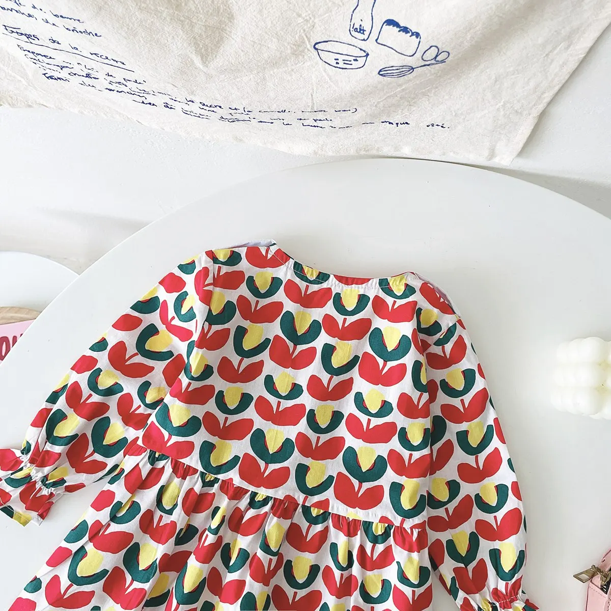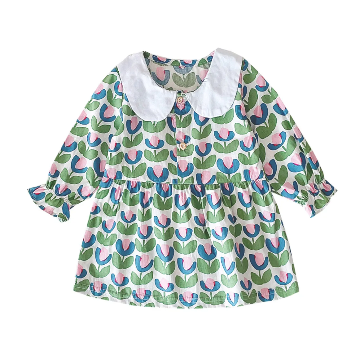 Sanlutoz Autumn Princess Girls Dress Long Sleeve Floral Cotton Toddler Kids Dress Holiday