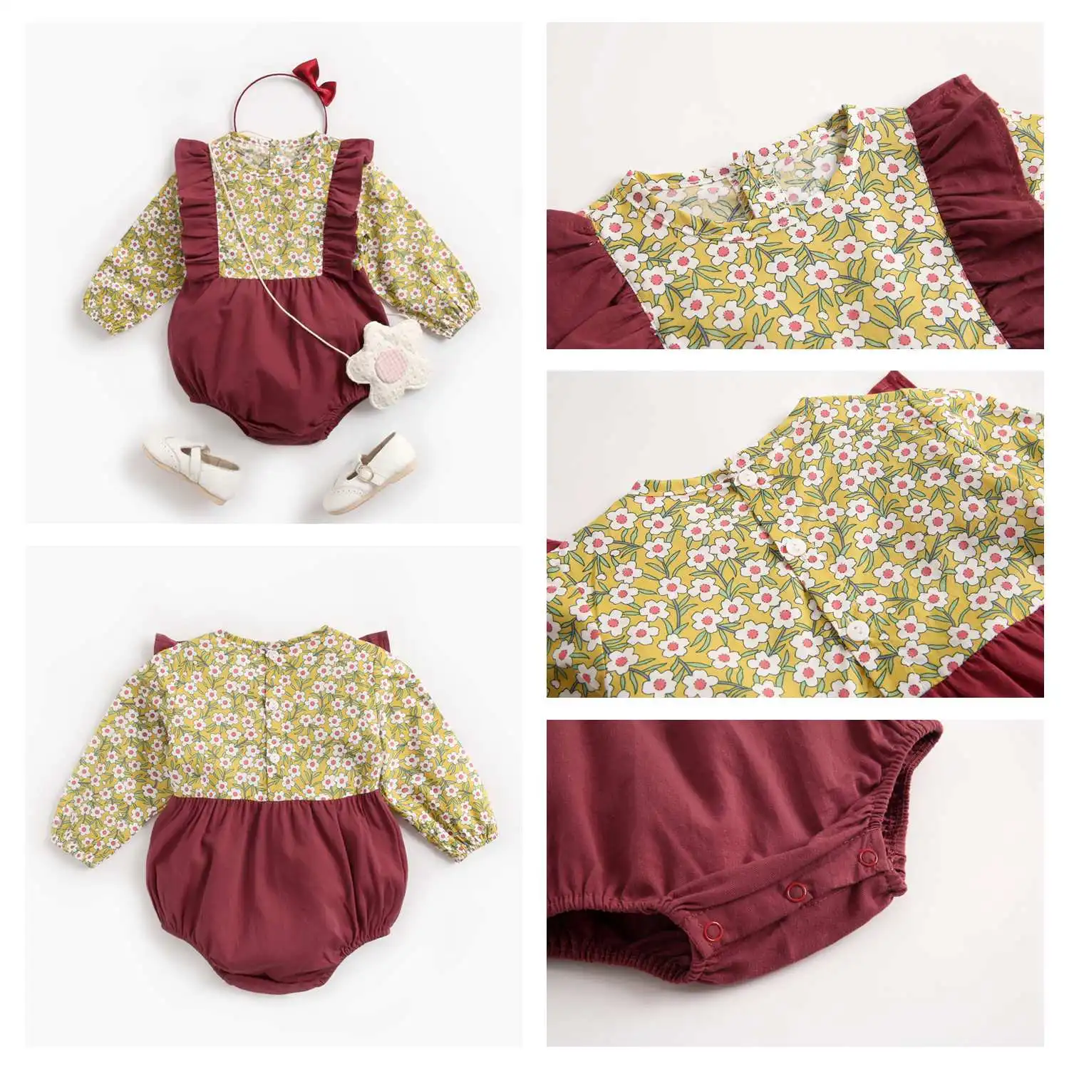 Autumn Spring Newborn Baby Girls Cotton Bodysuits Flower Cute Princess Infant Clothing Onesies Long Sleeve