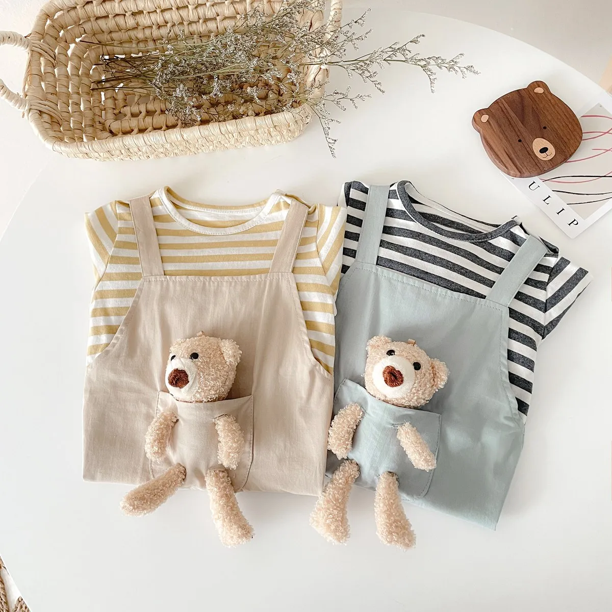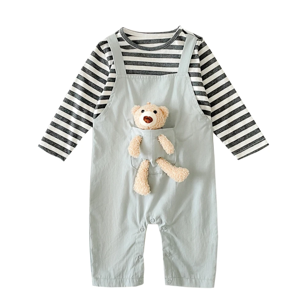 Baby Boys Girls Rompers Autumn Long Sleeve Cute Bear Infants Unisex Clothing Jumpsuits Striped Casual