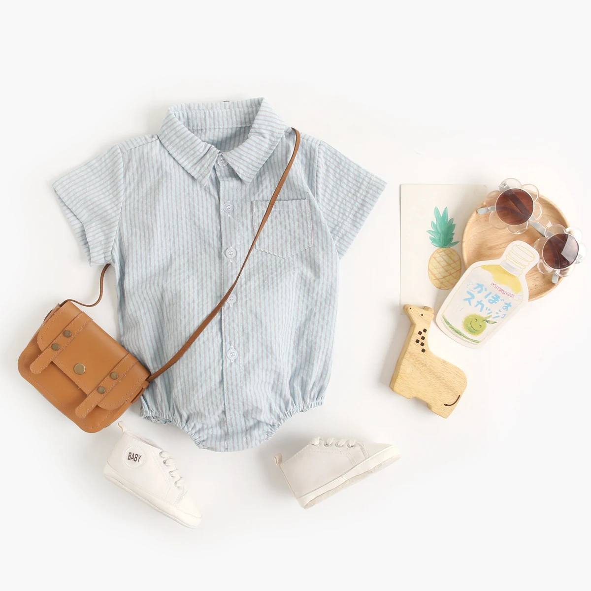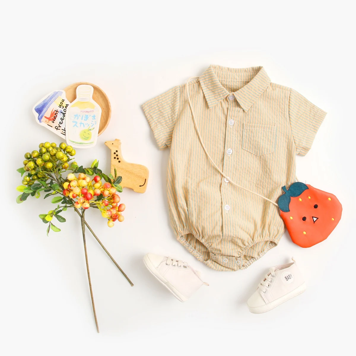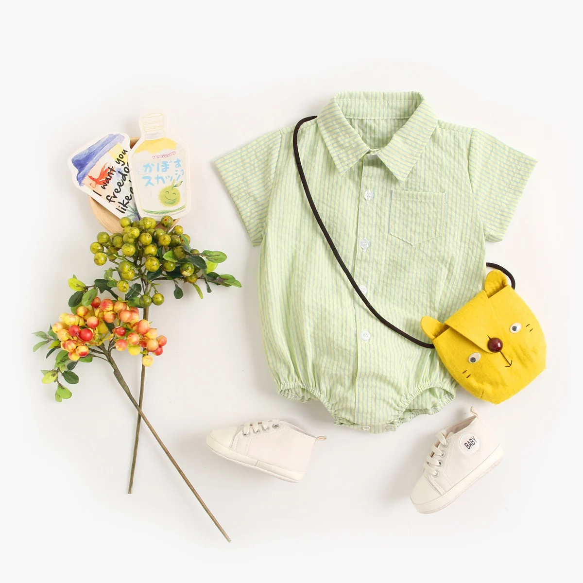 Baby Boys Summer Bodysuits Cotton Short Sleeve Infants Boys Plaid Clothing Onesies Fashion