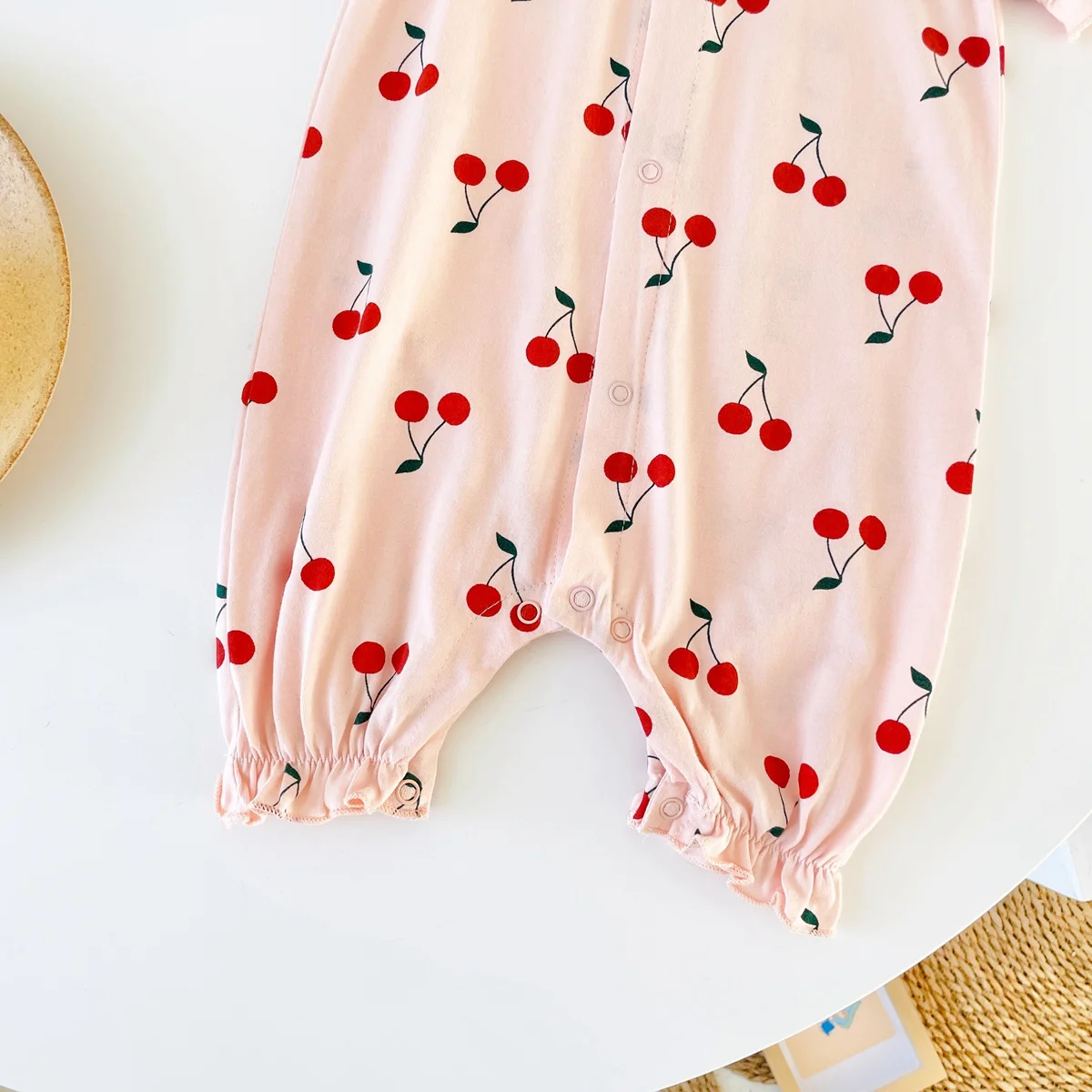 Baby Girls Cute Cherry Jumpsuits Summer Short Sleeve Newborn Girls Rompers Cotton Infants Clothes