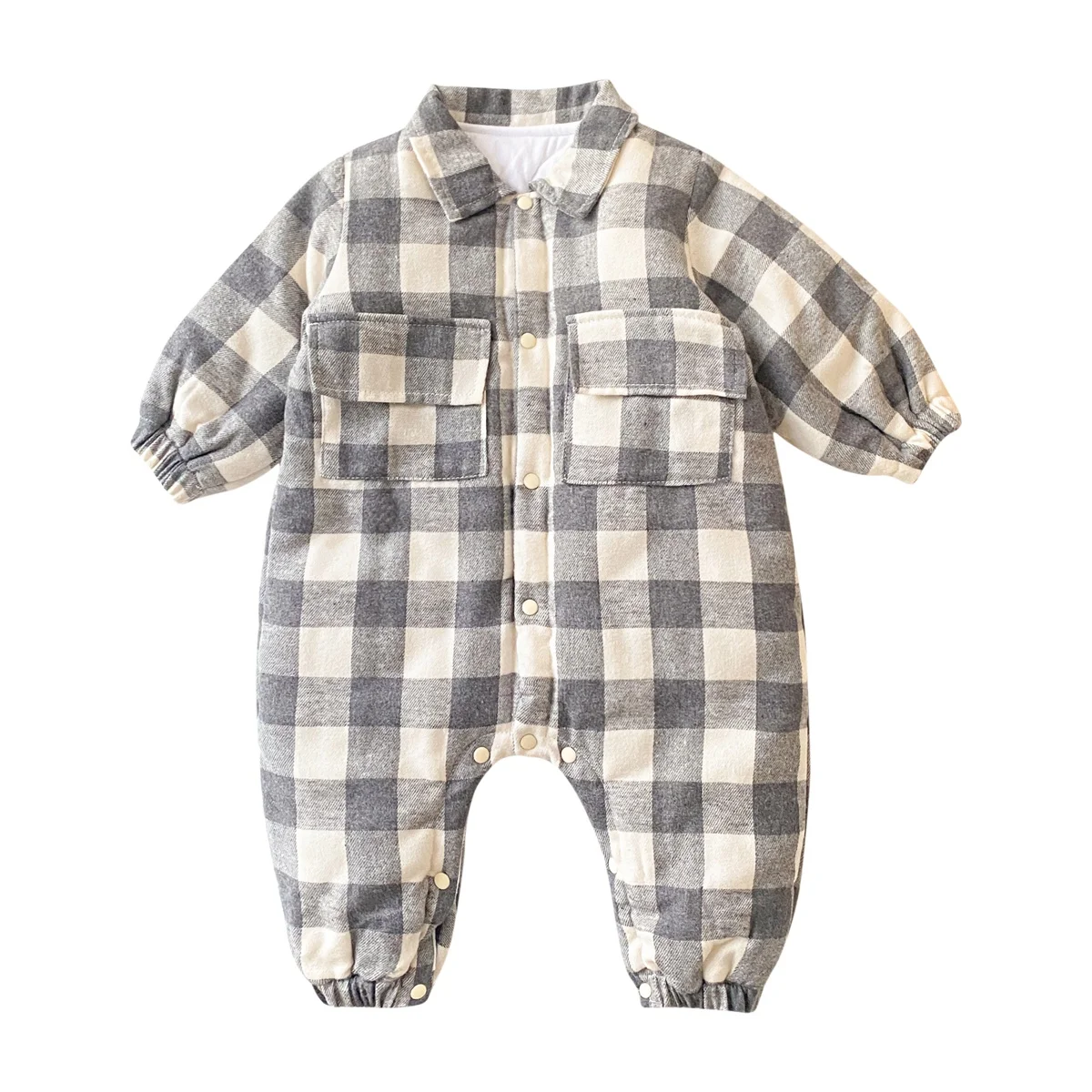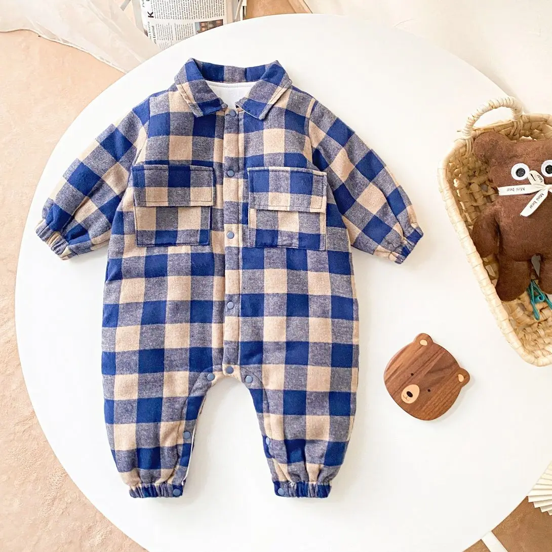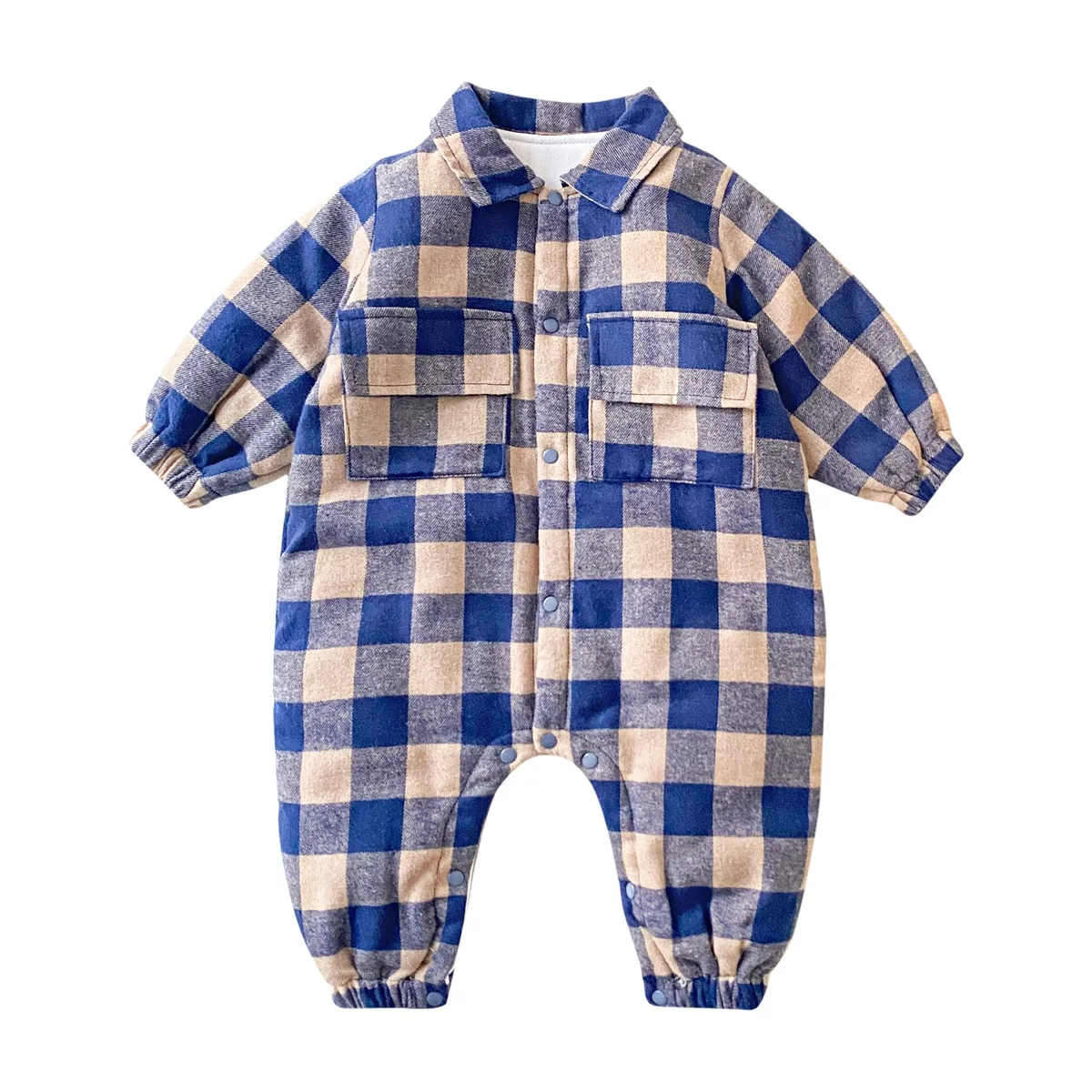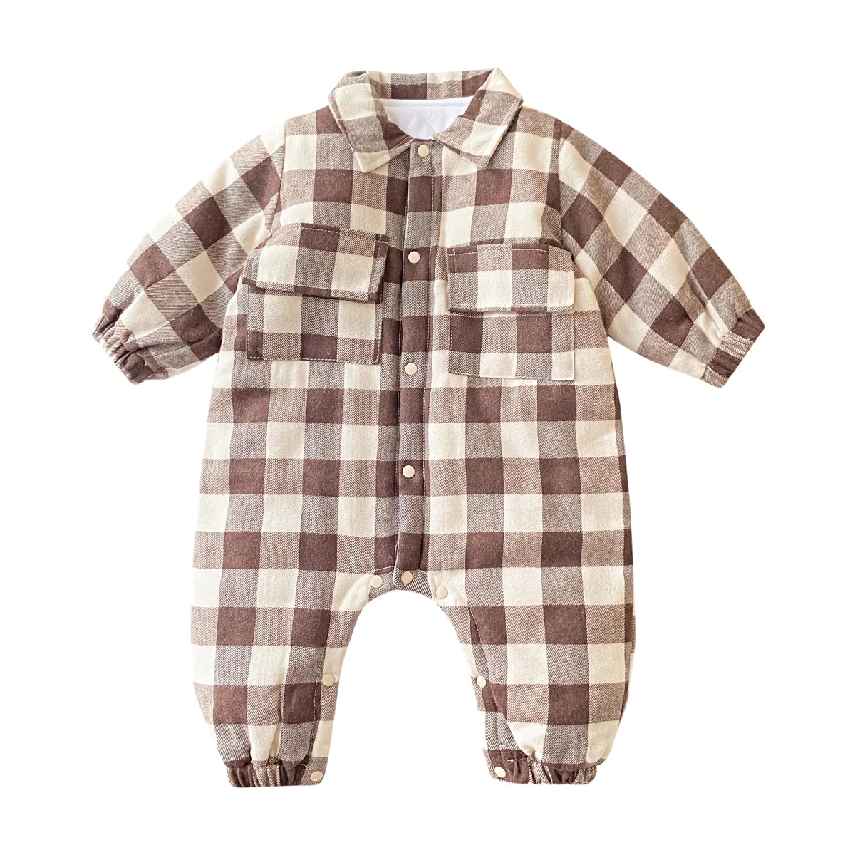 Casual Warm Winter Long Sleeve Baby Boys Rompers Plaid Infants Jumpsuits Clothing Fashion