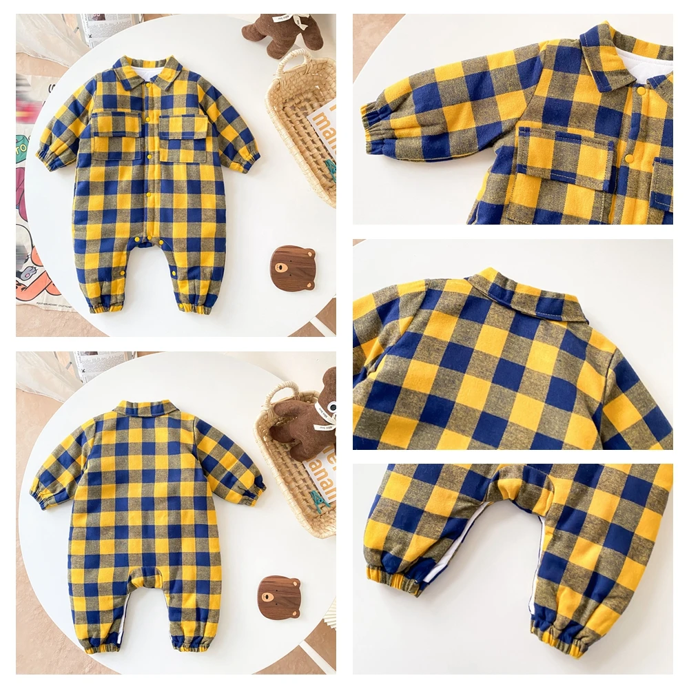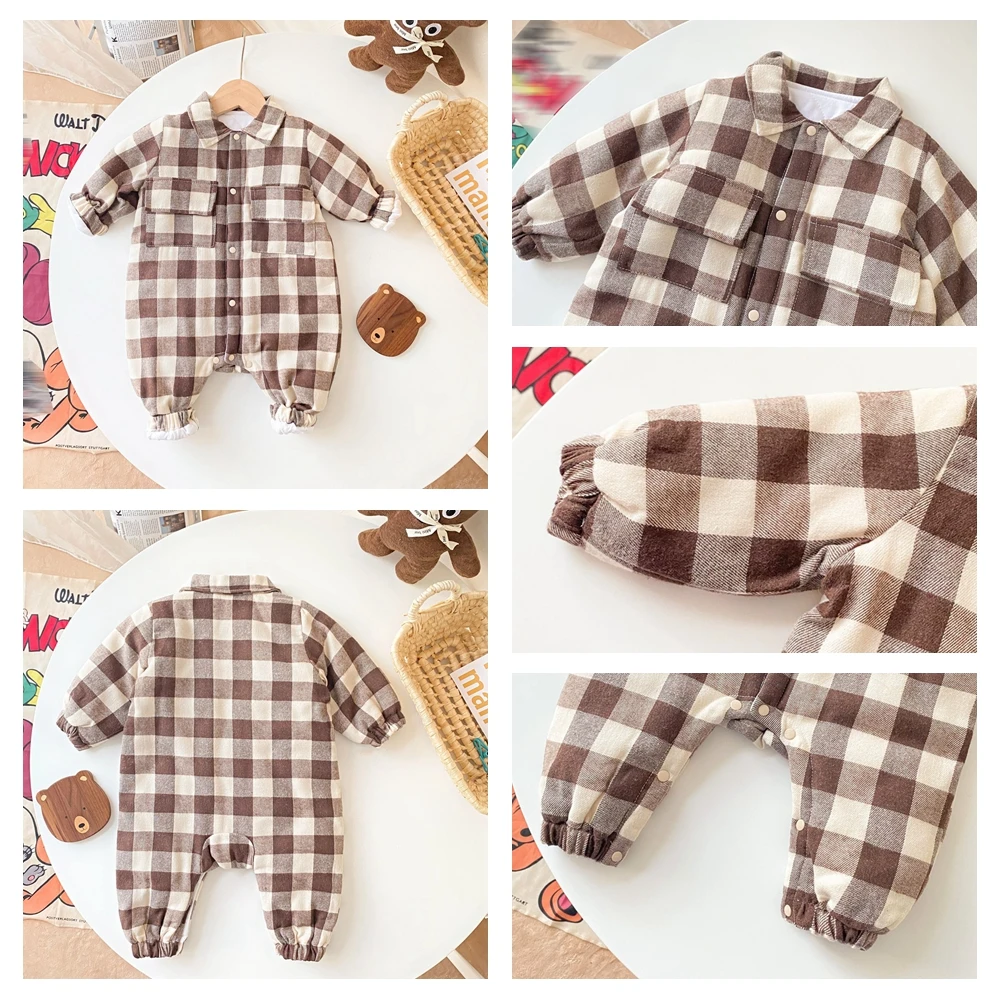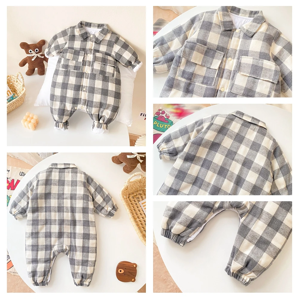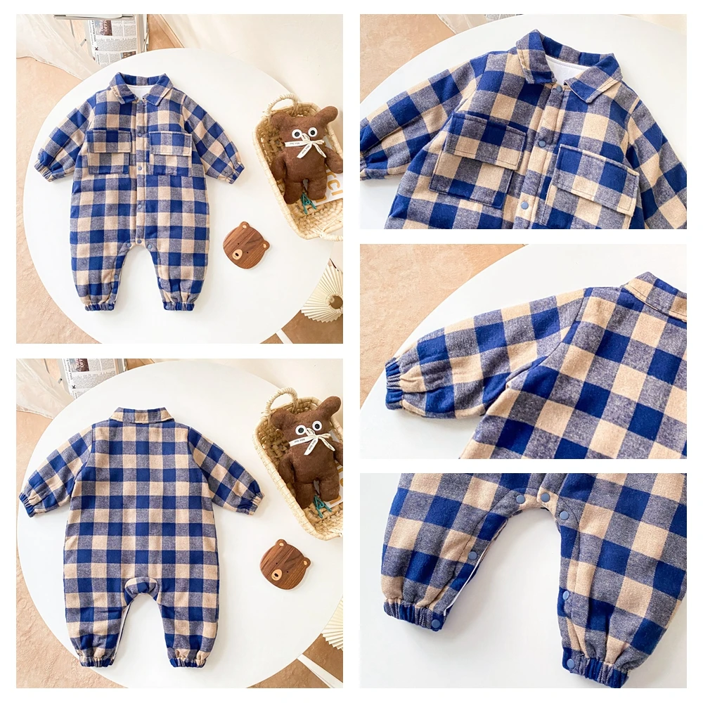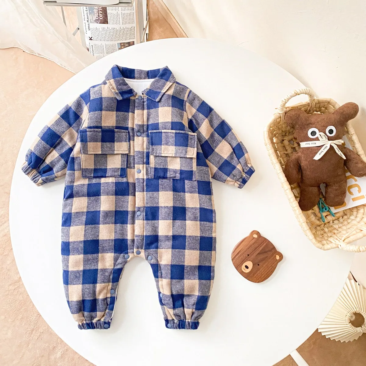 Casual Warm Winter Long Sleeve Baby Boys Rompers Plaid Infants Jumpsuits Clothing Fashion