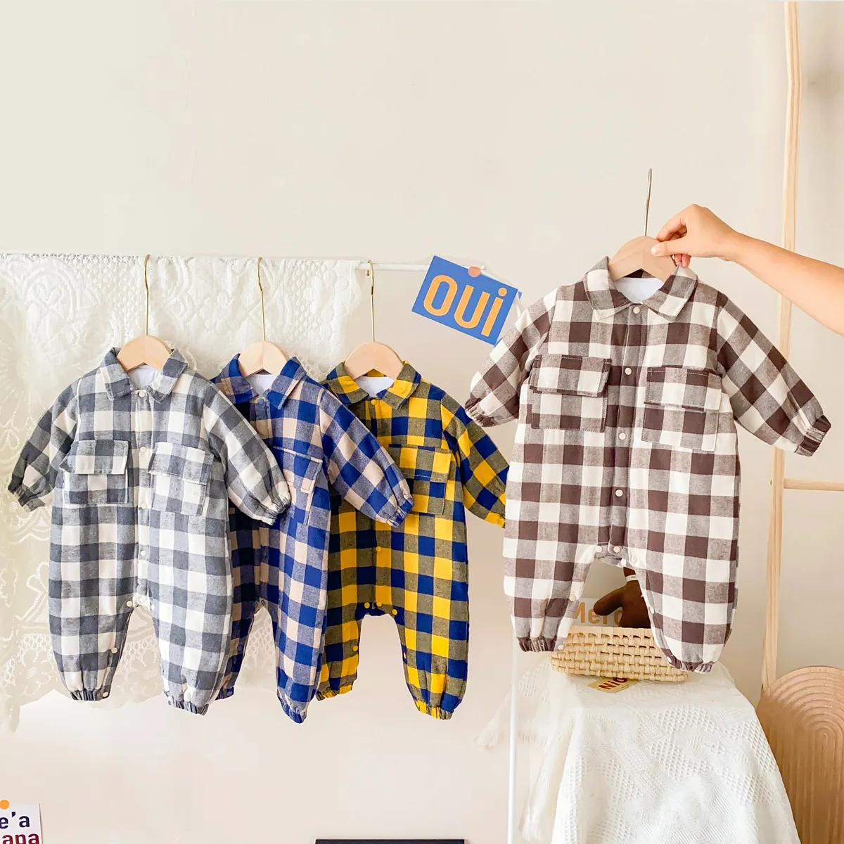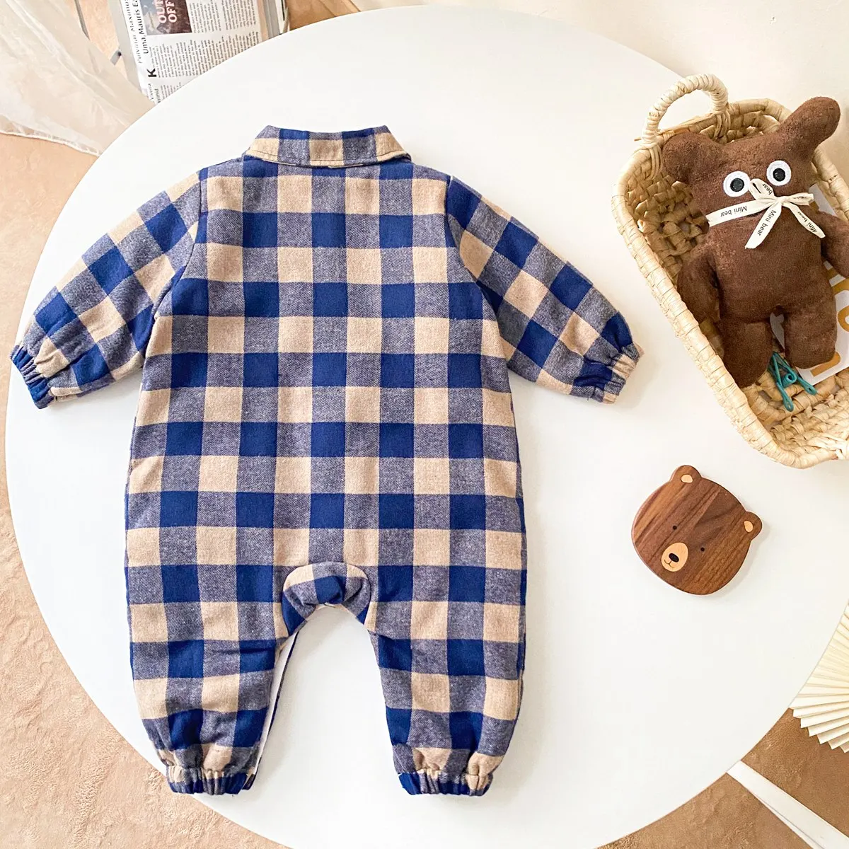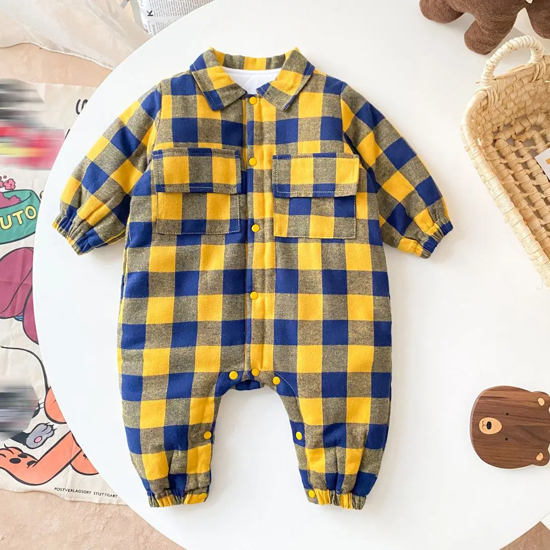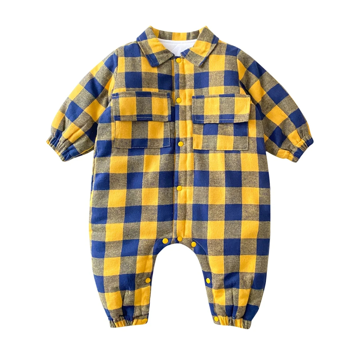 Casual Warm Winter Long Sleeve Baby Boys Rompers Plaid Infants Jumpsuits Clothing Fashion