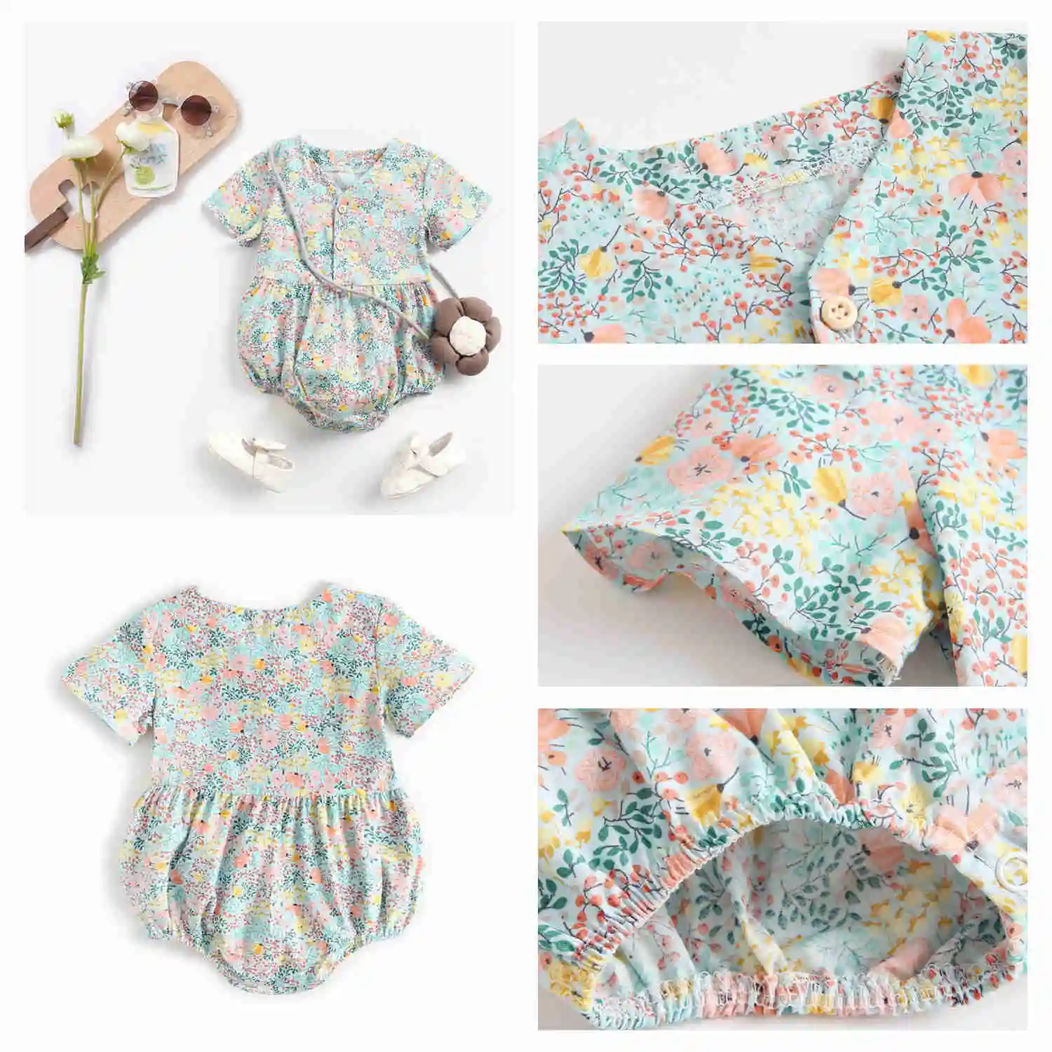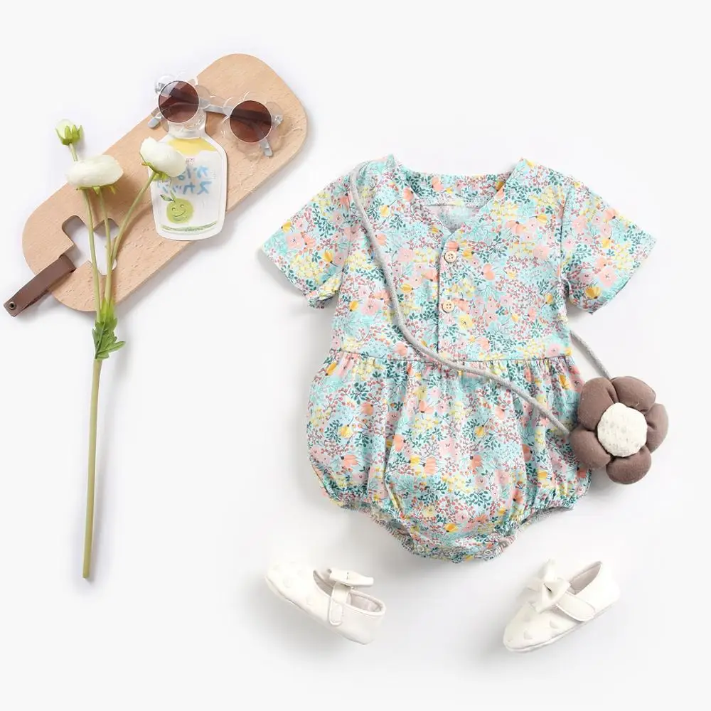 Cotton Baby Girls Bodysuits Summer Infants Clothing Princess Floral Short-Sleeve Infants Fashion