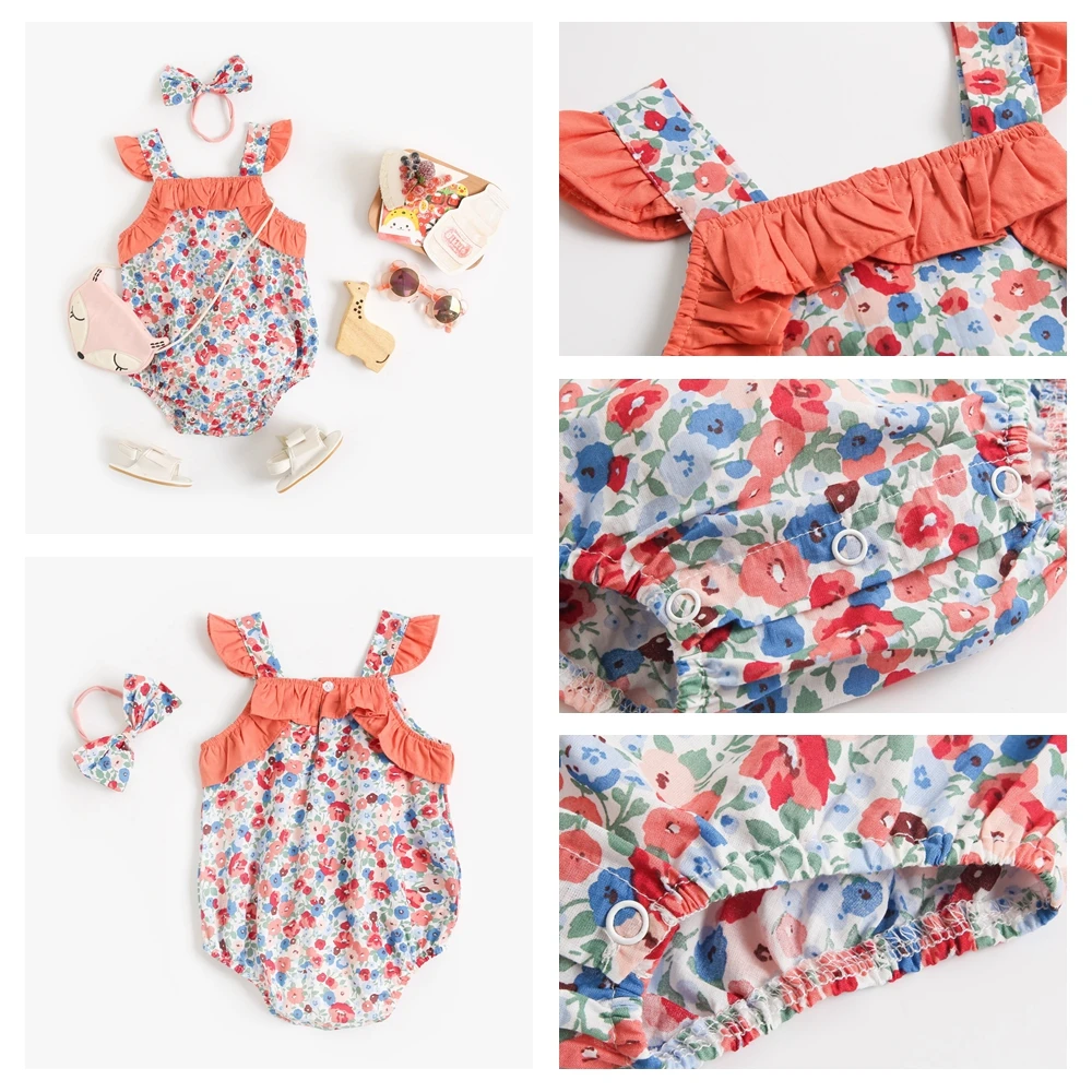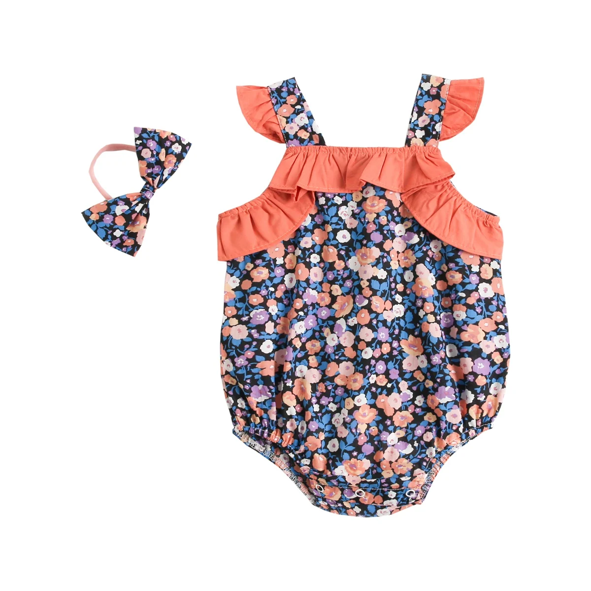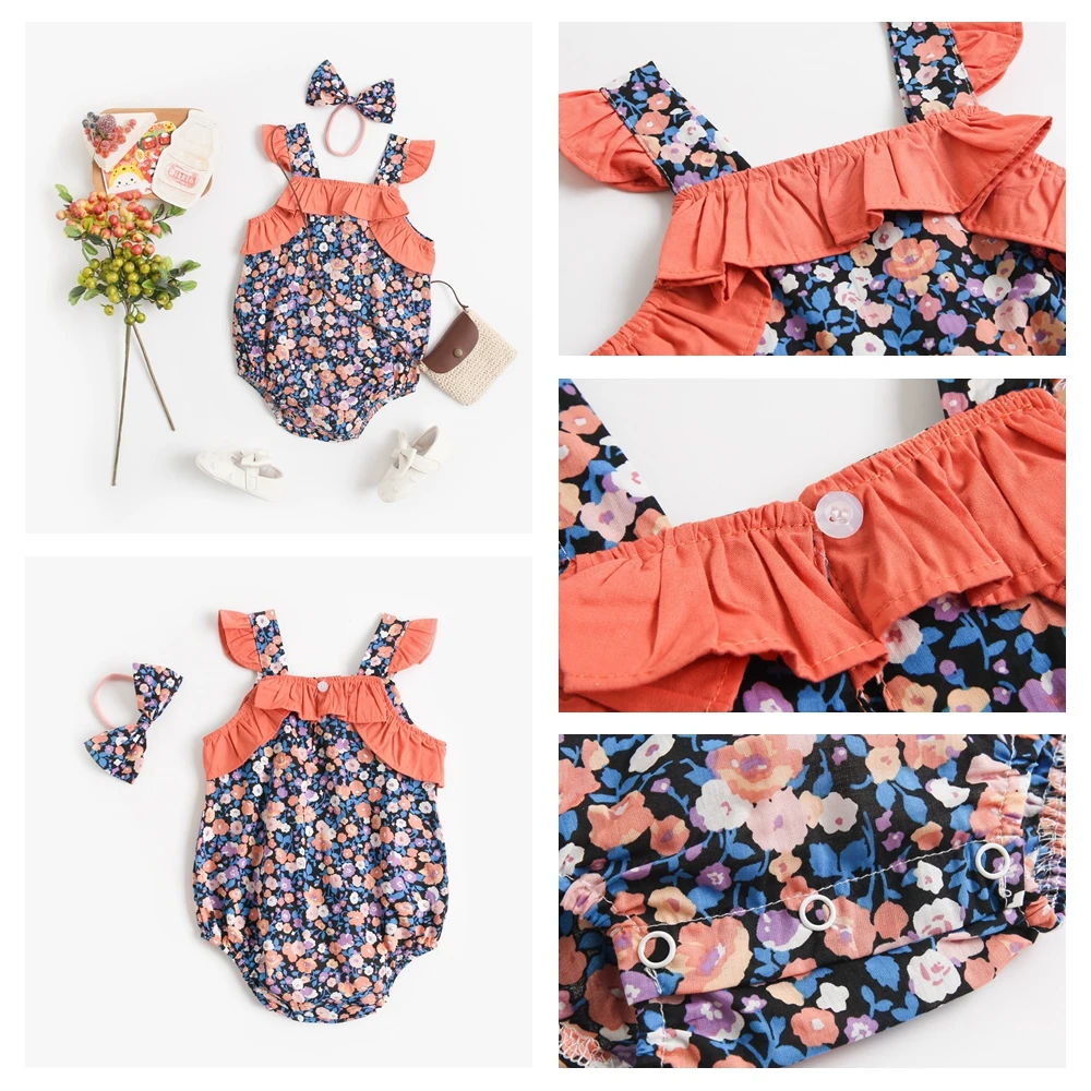 Cotton Sleeveless Toddler Girls Bodysuits Summer Baby Clothing Casual with Headband