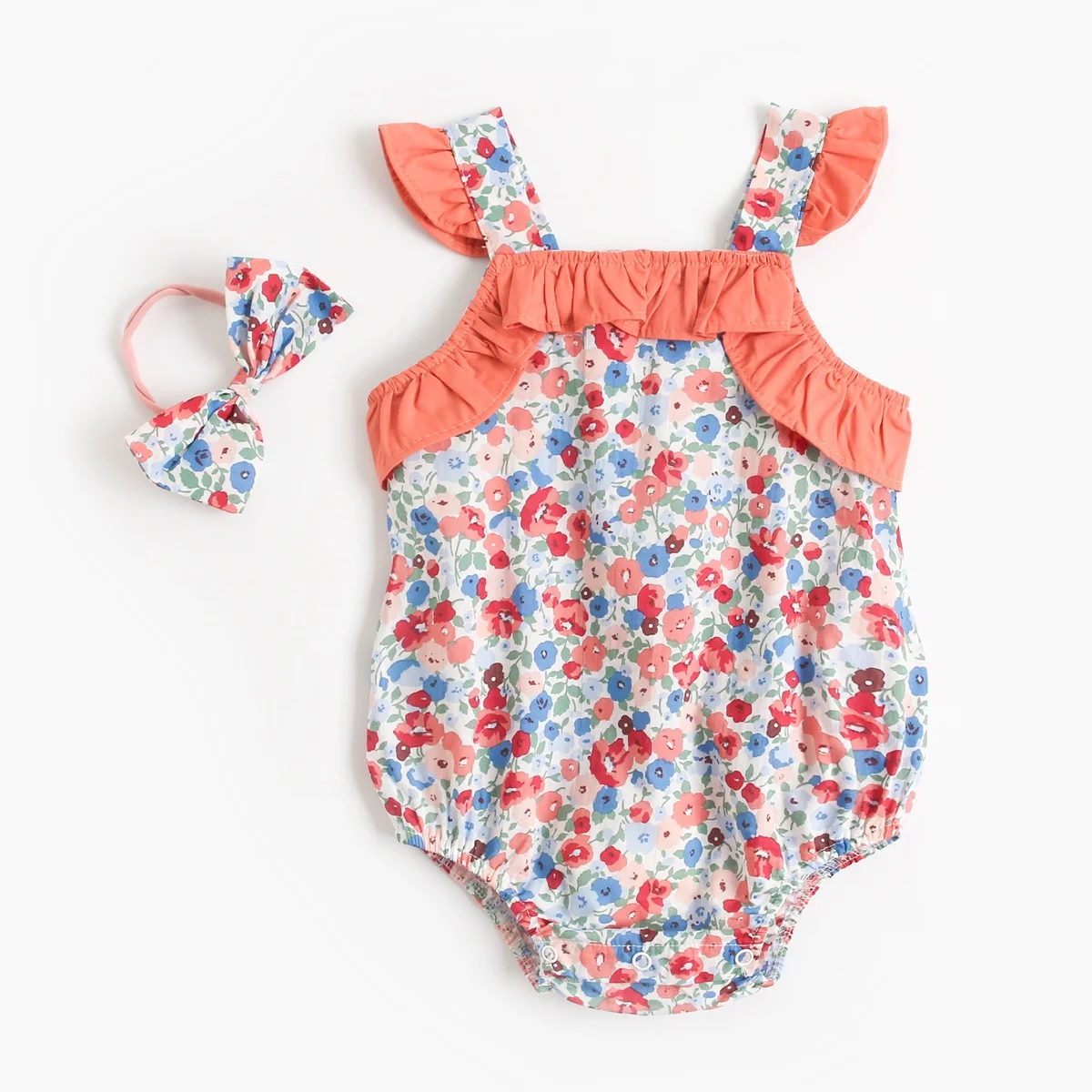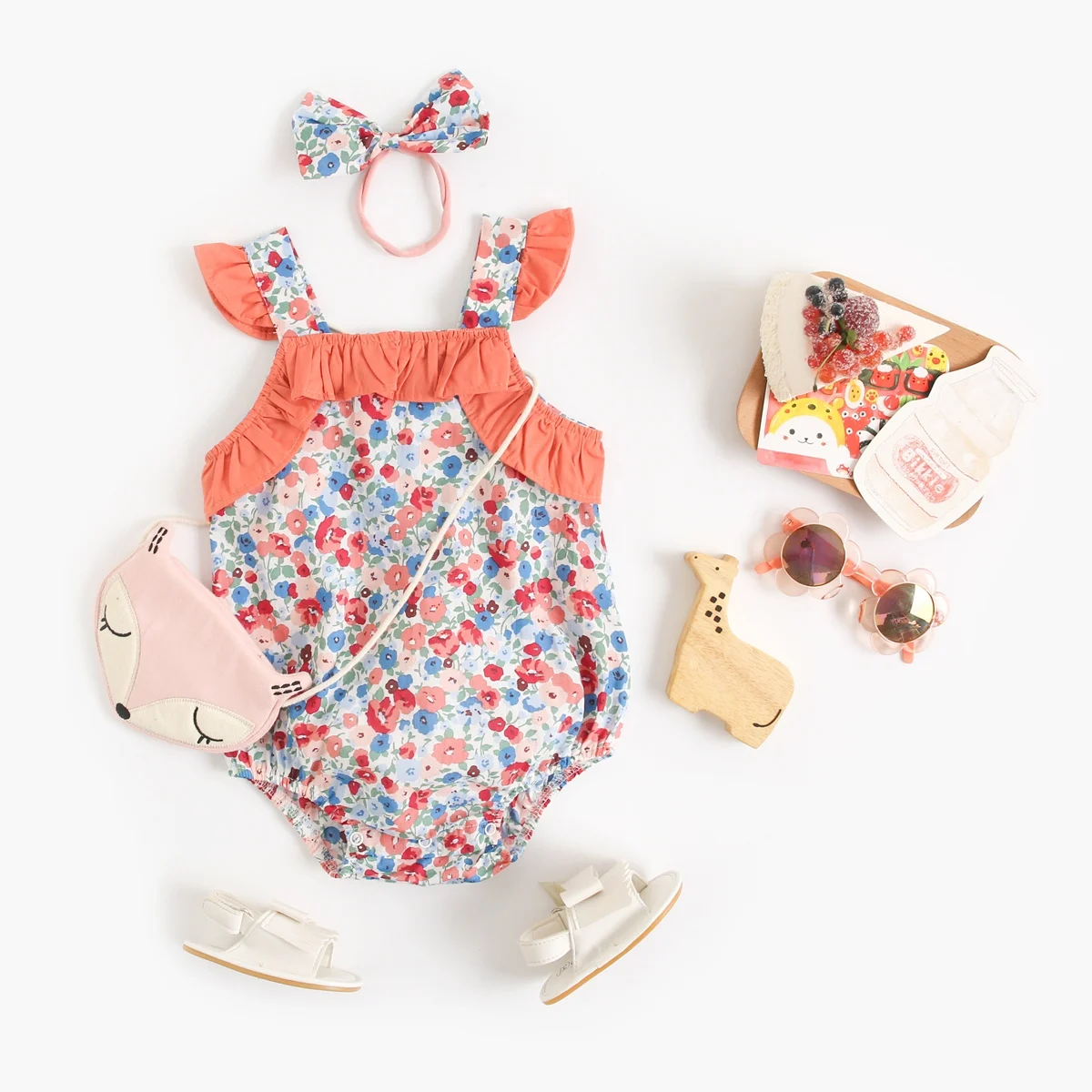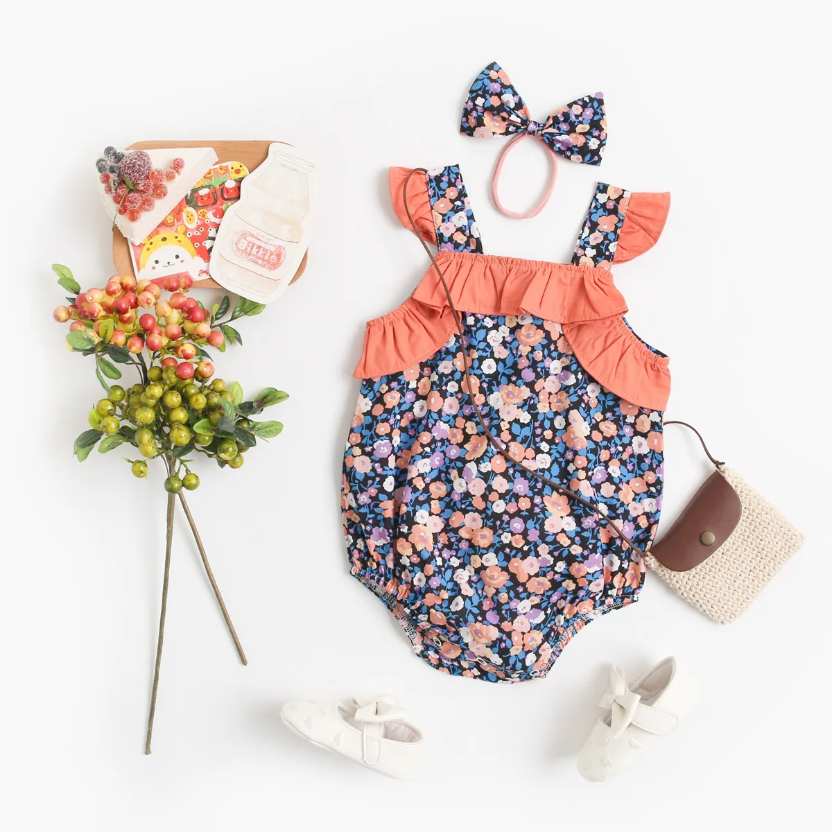 Cotton Sleeveless Toddler Girls Bodysuits Summer Baby Clothing Casual with Headband