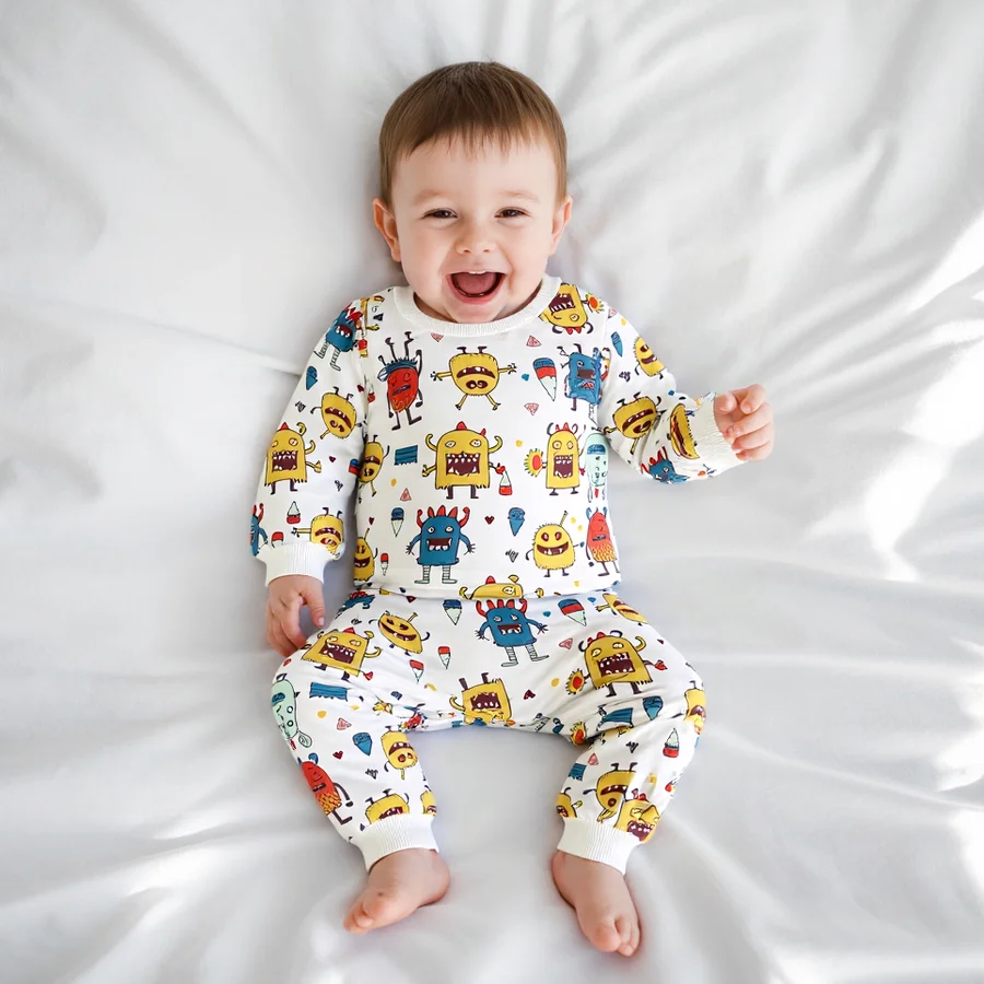 Baby Clothing Sets Spring Autumn: Tops + Long Pants Monsters 2Pcs