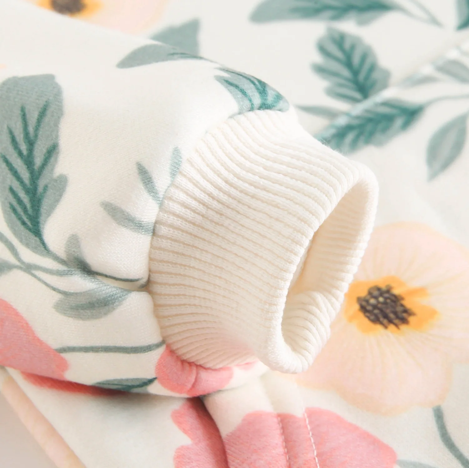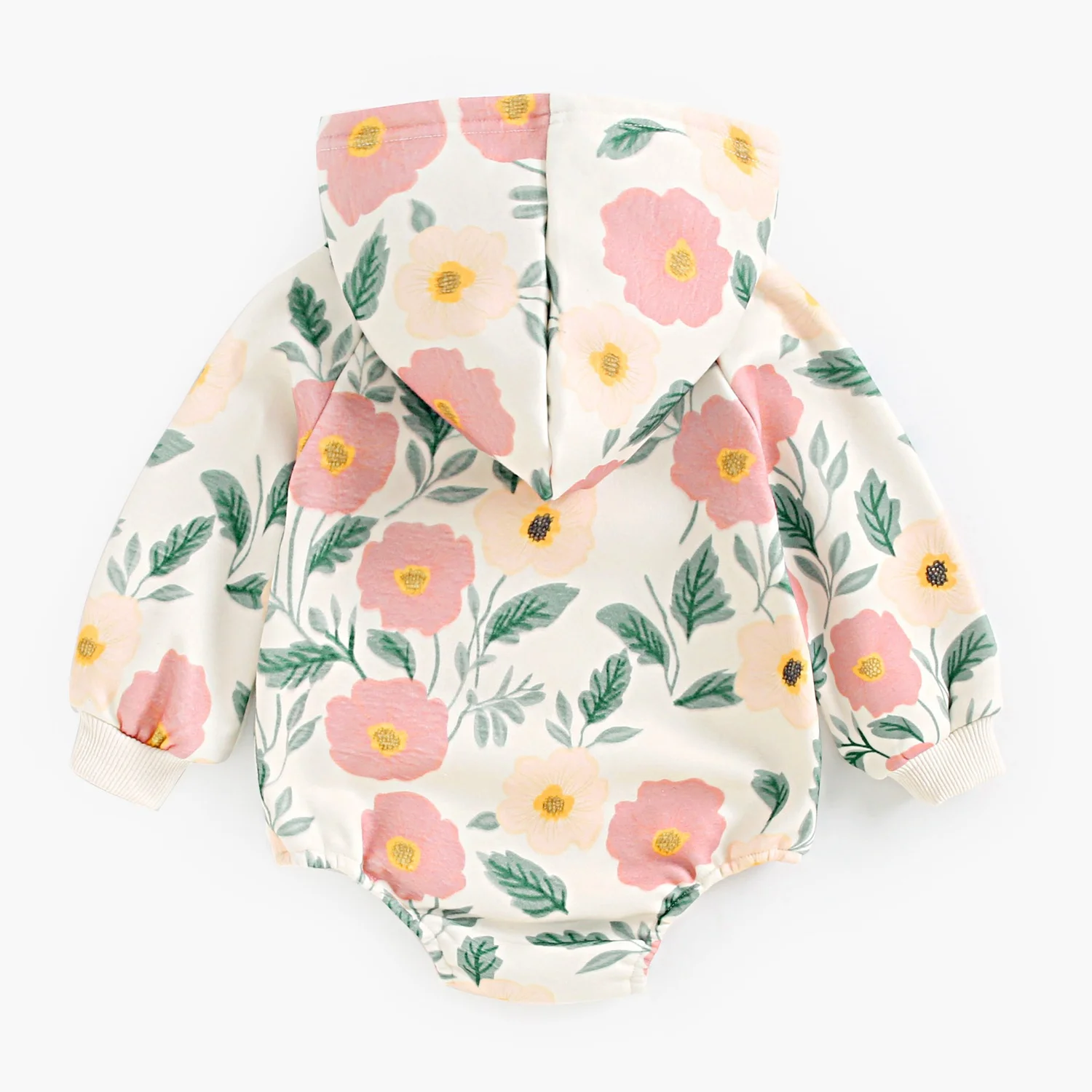 Flower Long Sleeve Infants Bodysuits Winter Warm Cute Baby Clothing Onesies Hooded
