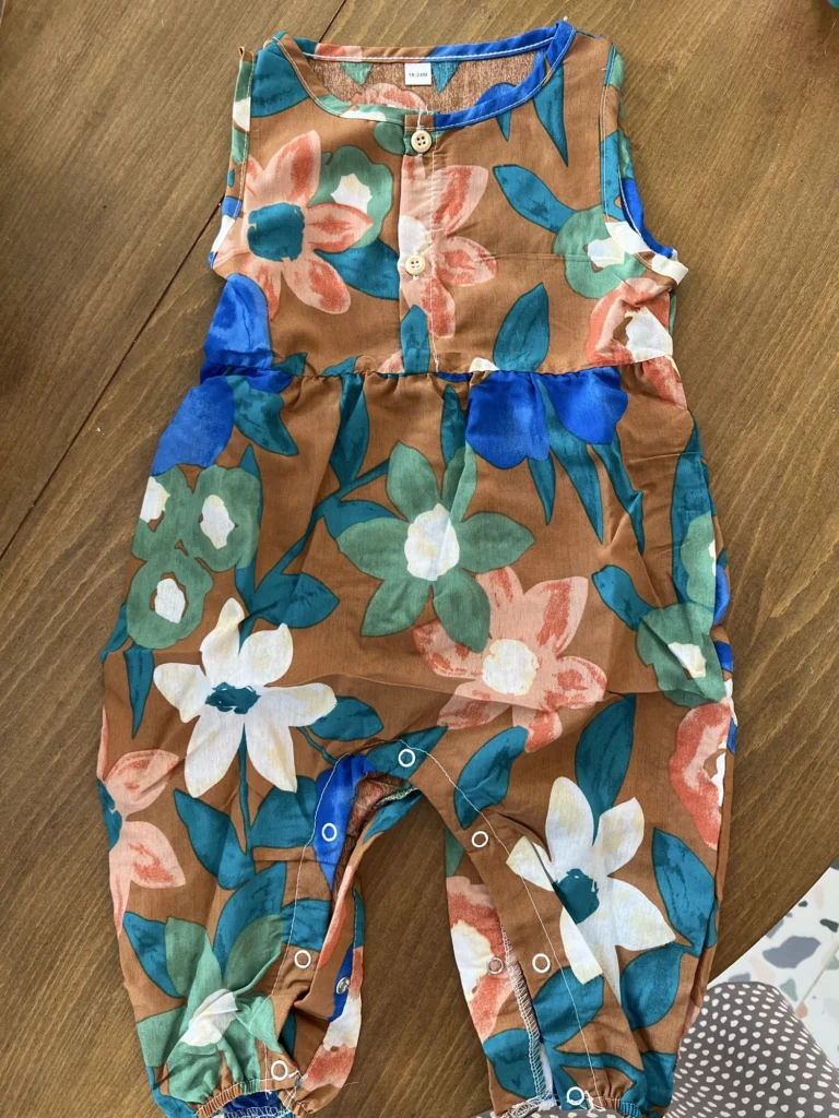 The jumpsuit is super. Perfect for summer heat. I ordered for 12-18 months, but we are big (63 cm) so we’ve been wearing it since 5 months.