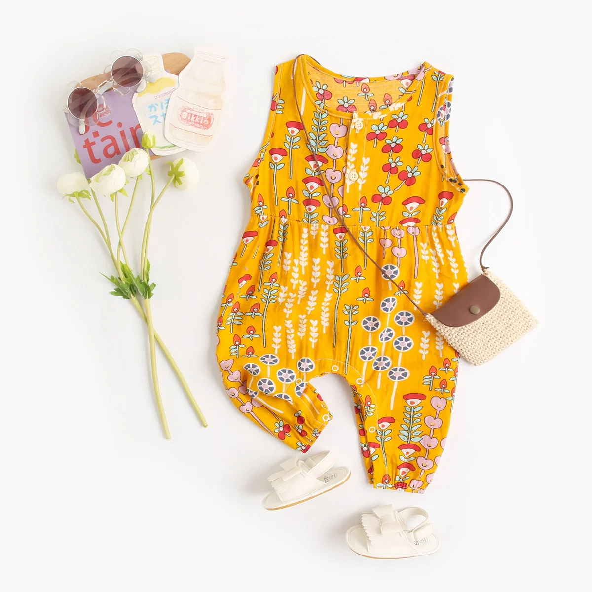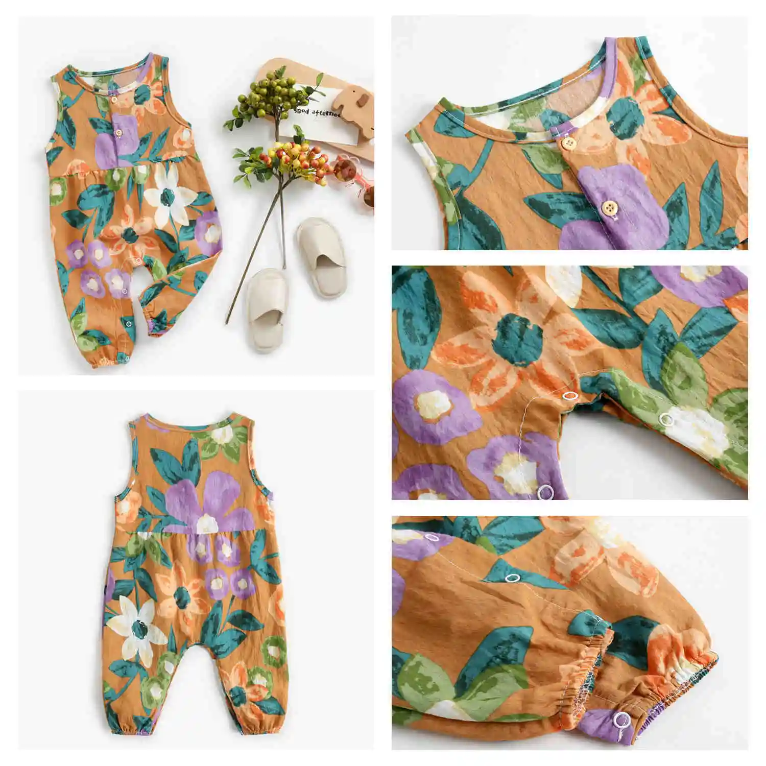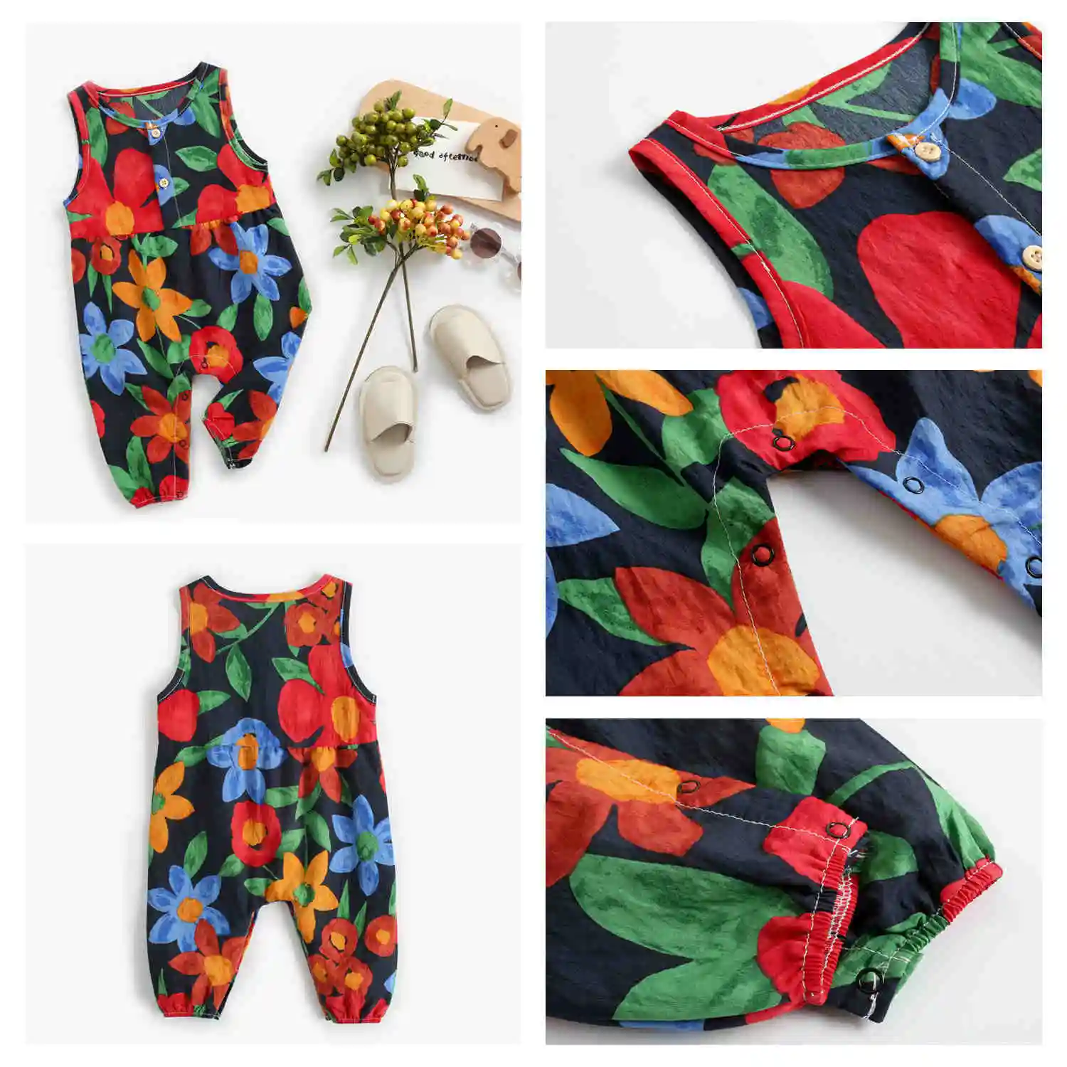 Flowers Baby Girls Bodysuits Sleeveless Summer Baby Bodysuit Cotton Baby Clothing for Newborn
