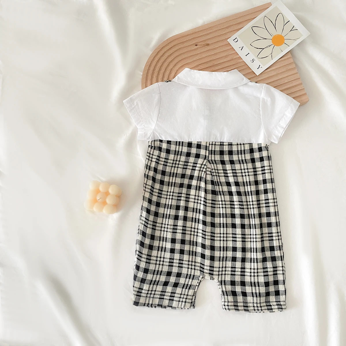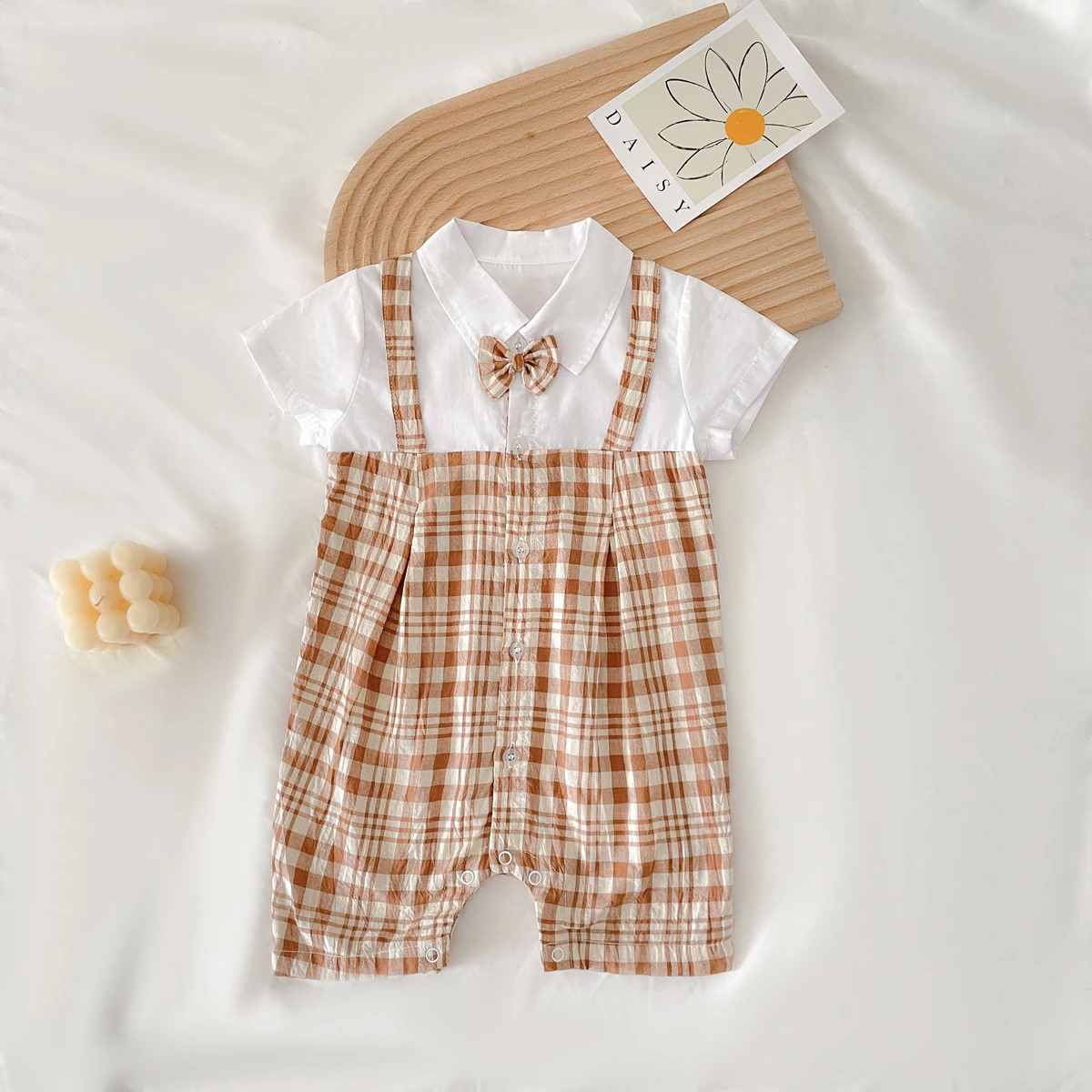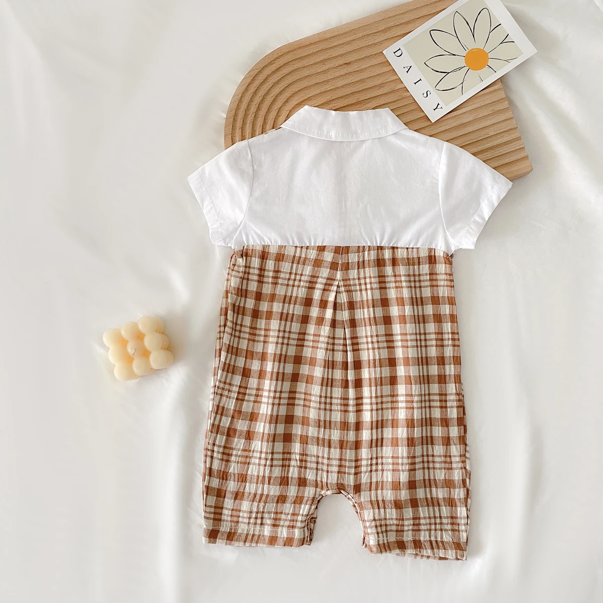 Gentle Baby Boys Summer Clothing Plaid Cotton Short Sleeved Infants Romper Casual