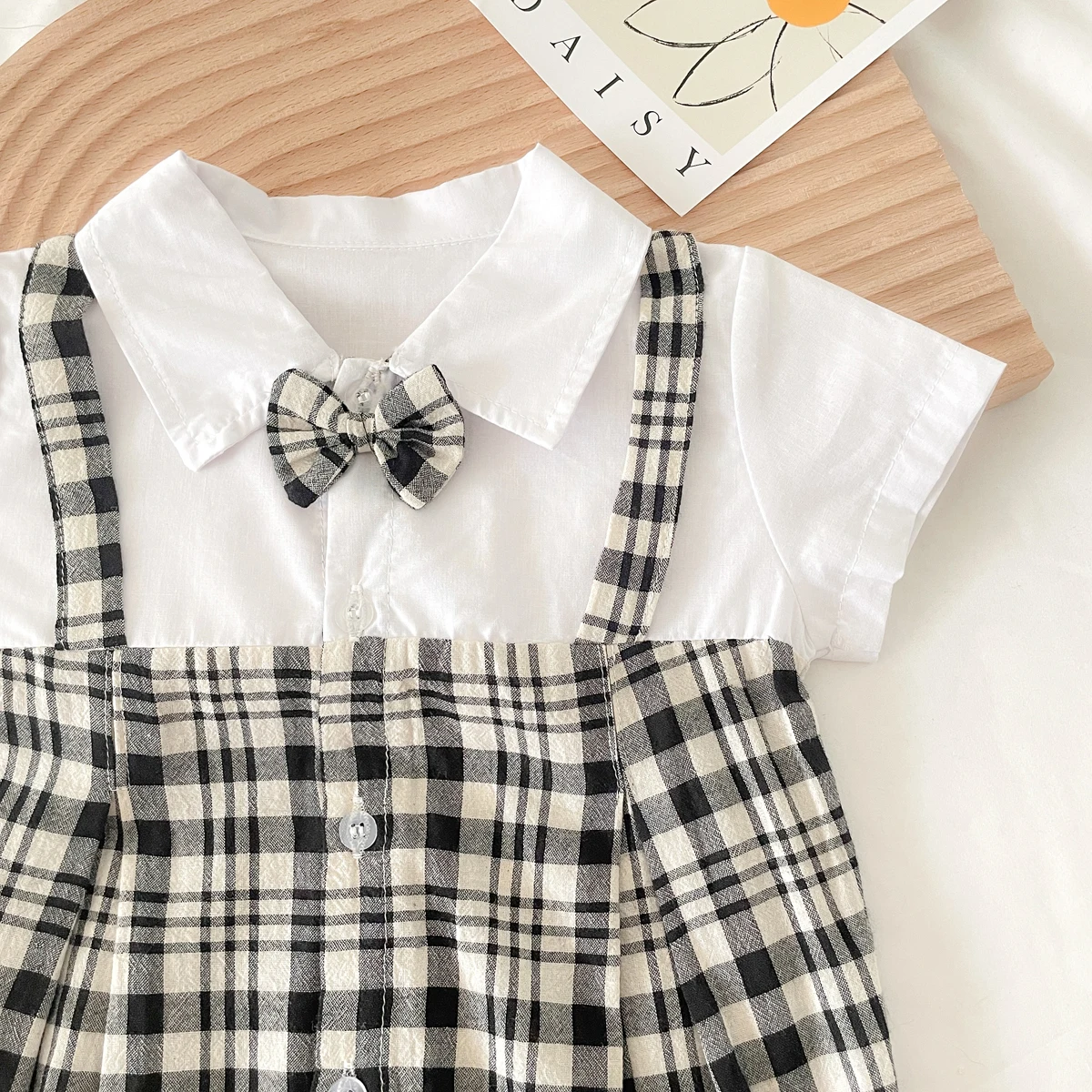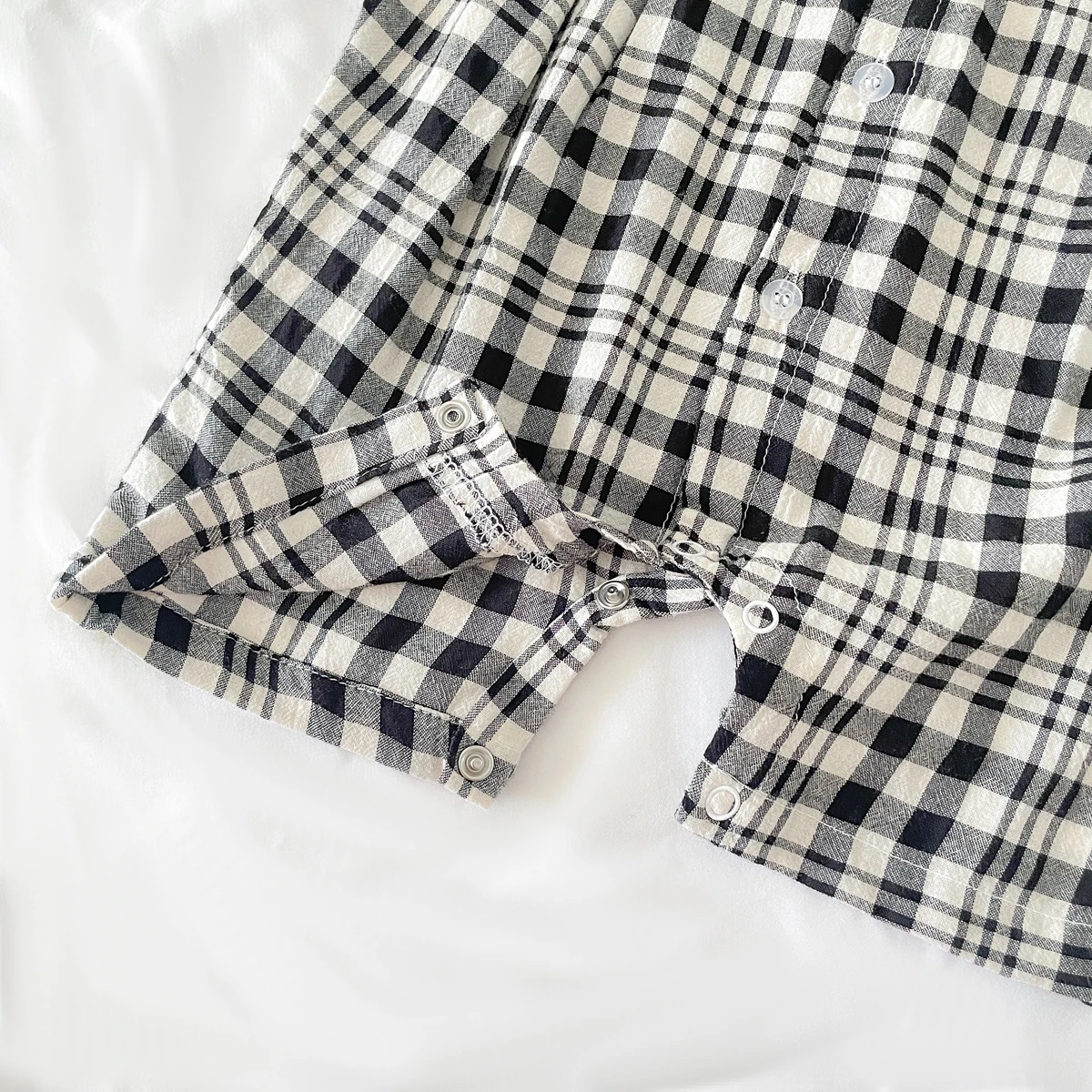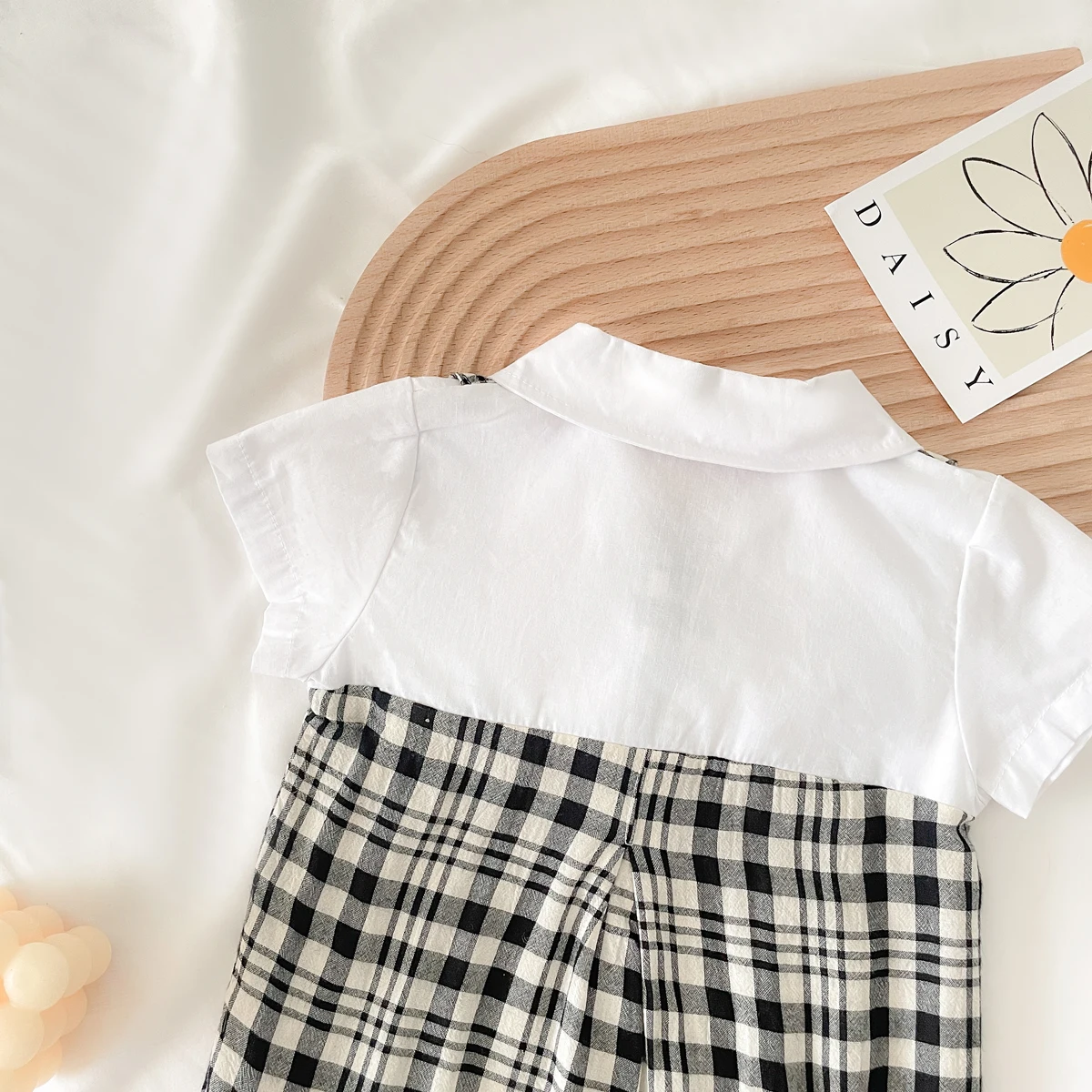 Gentle Baby Boys Summer Clothing Plaid Cotton Short Sleeved Infants Romper Casual