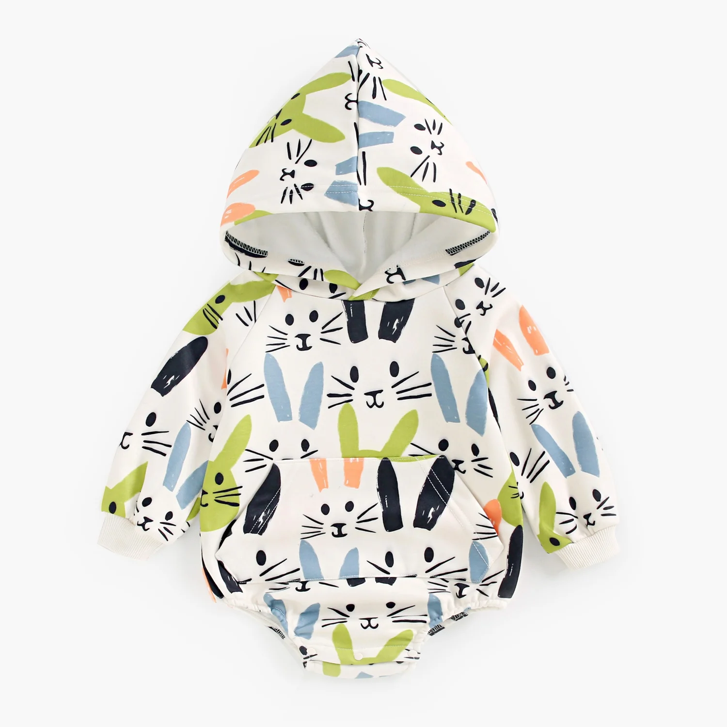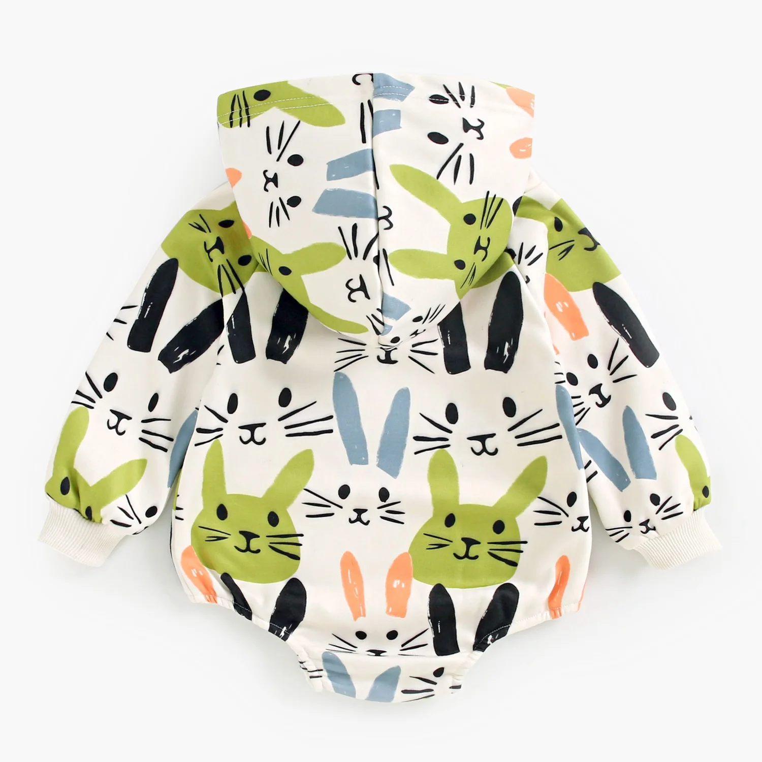 Long Sleeve Cute Bunny Infants Bodysuits Winter Warm Cute Baby Clothing Onesies Hooded