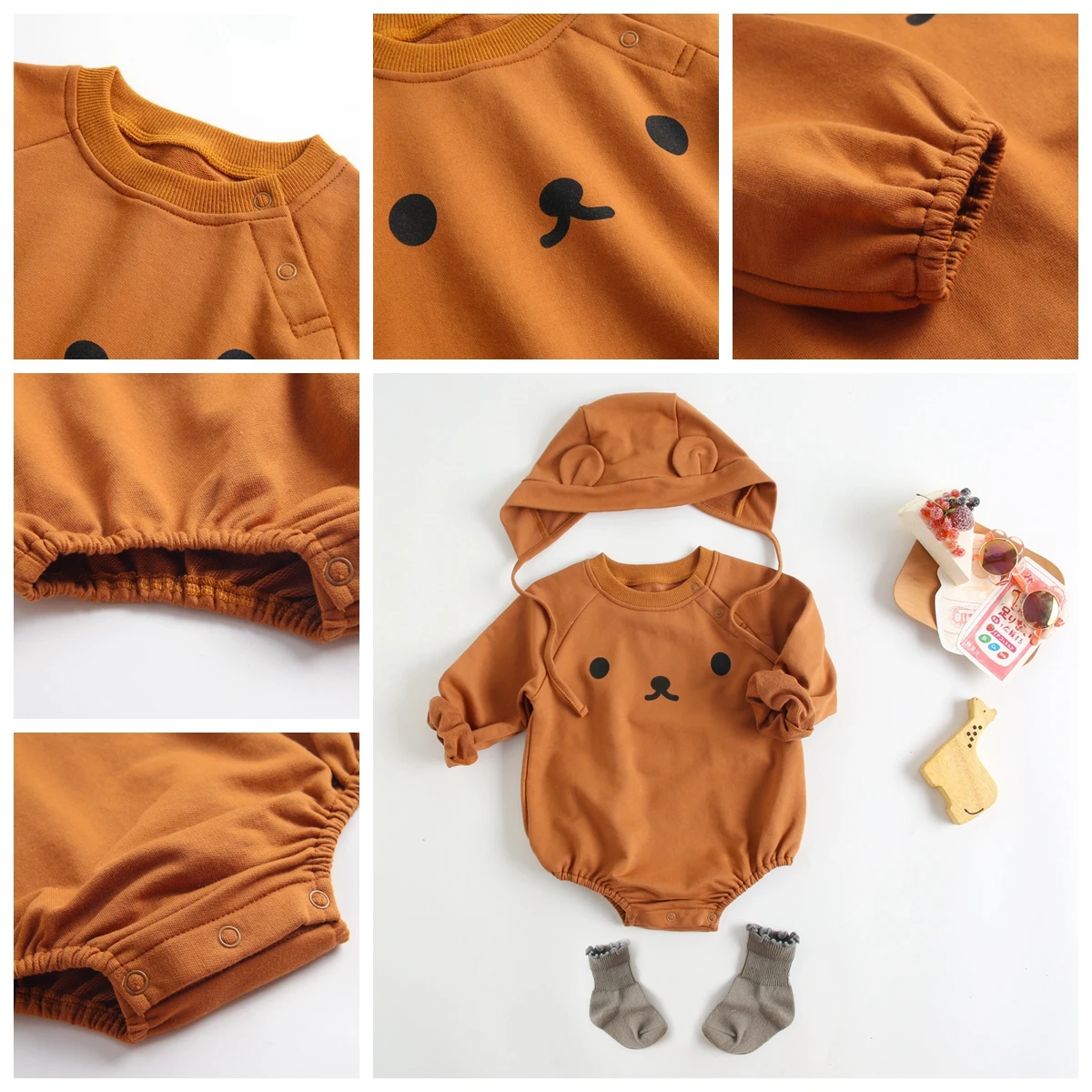 Long Sleeve Infants Boys Girls Clothing Autumn Cute Animal Toddler Bodysuits with Little Hat