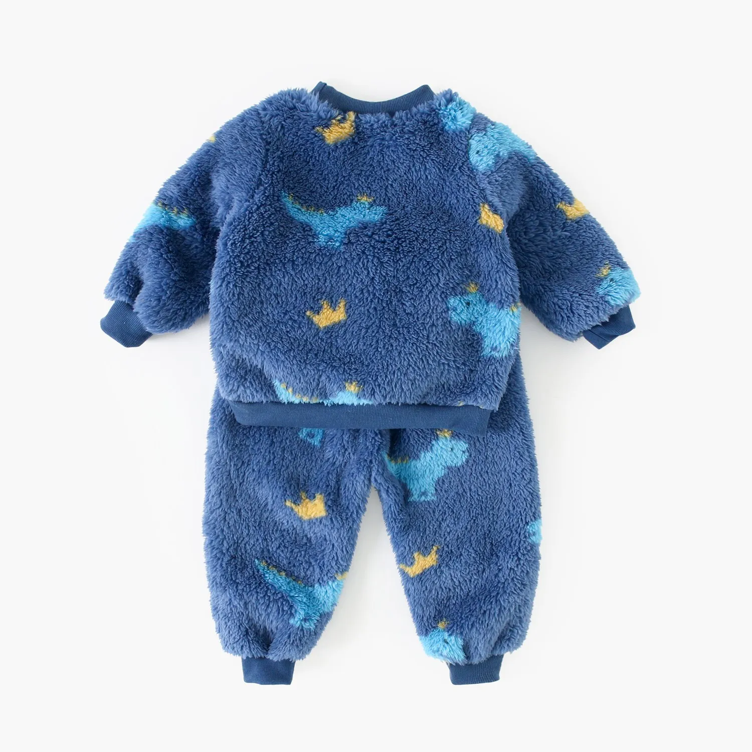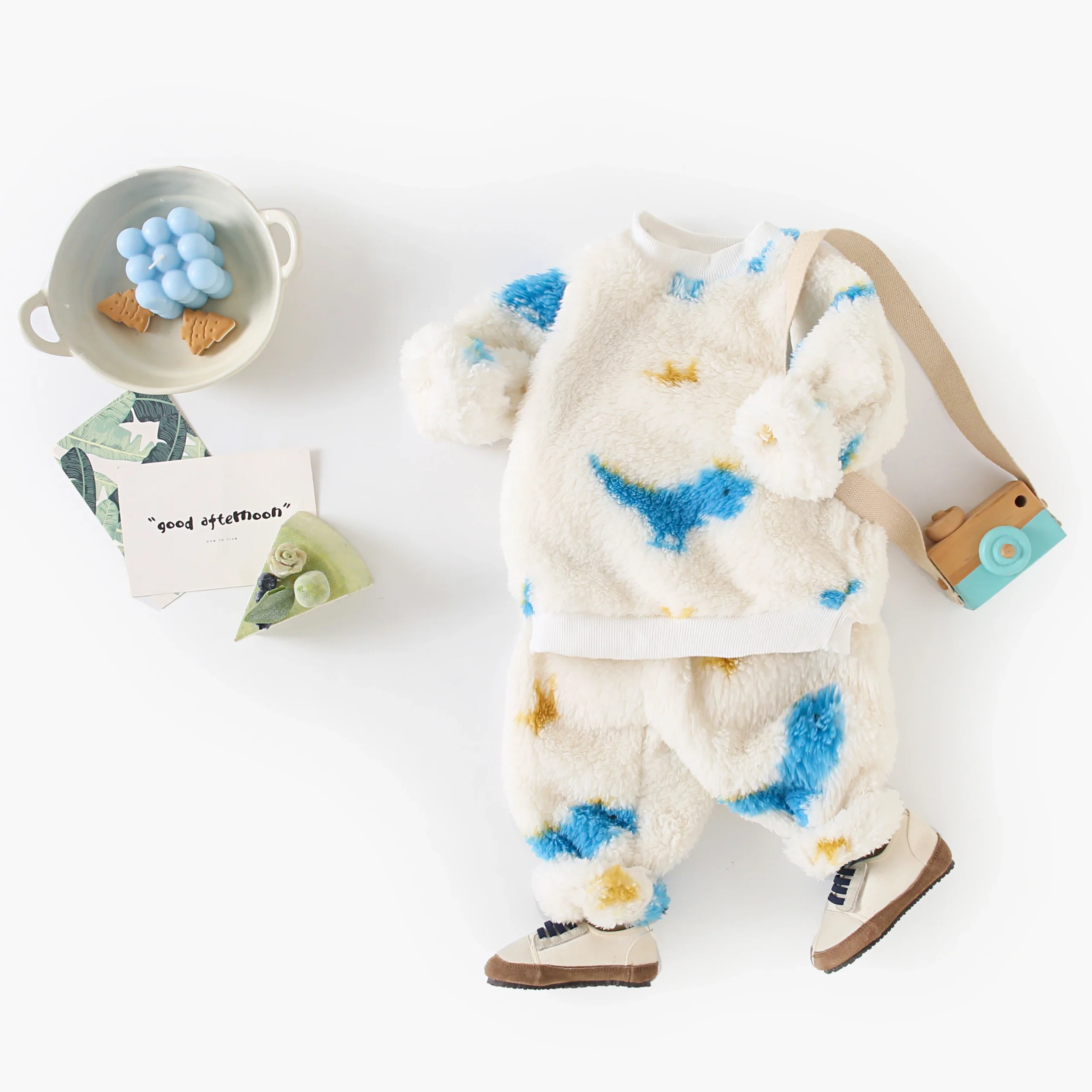 Sanlutoz Long Sleeve Winter Baby Tops + Long Pants Cute Fleece Thickened Little Kids Outfits Sets Clothing Warm