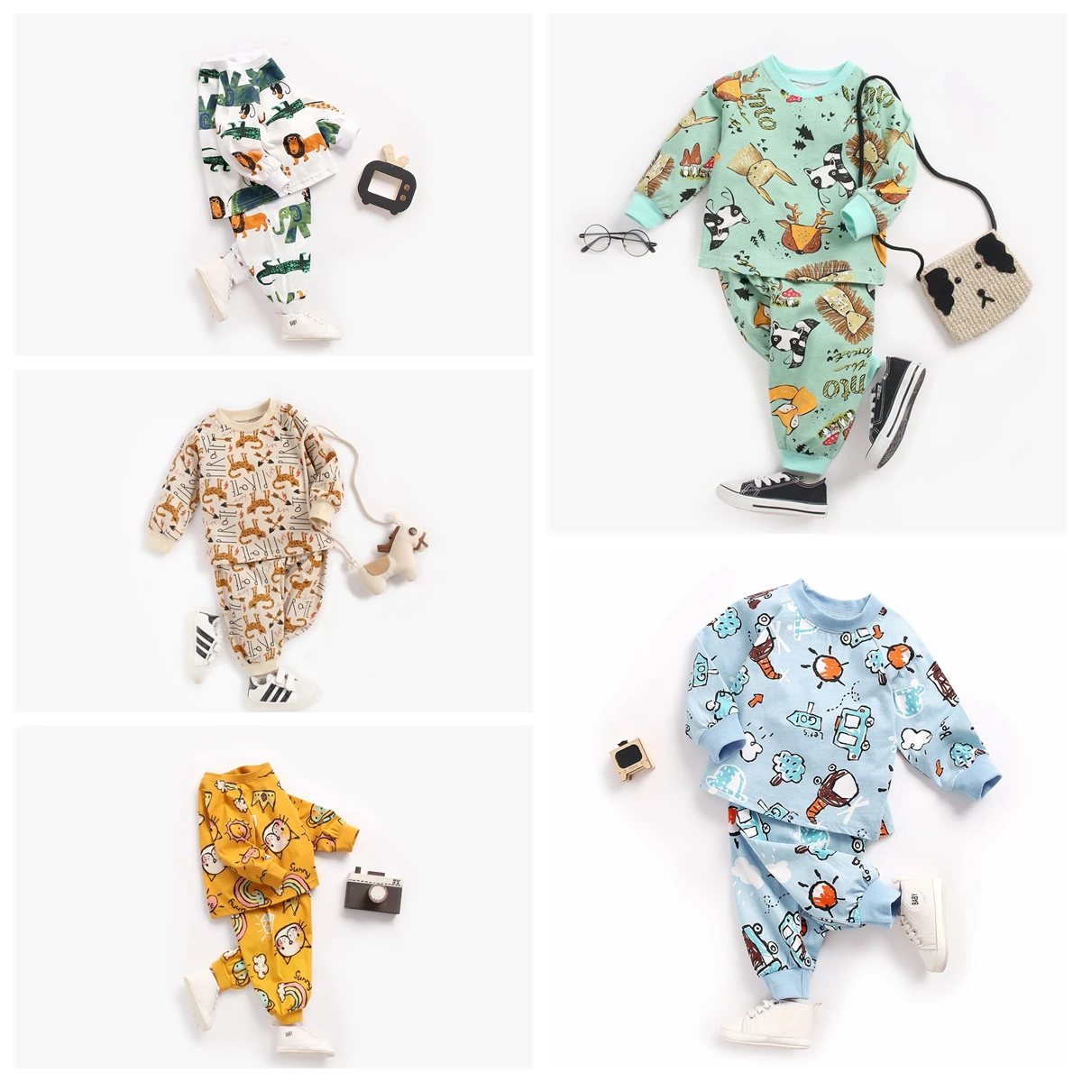 Spring Autumn Baby Clothing Sets: Cotton Baby Boys Girls Shirts + Bottoms 2pcs