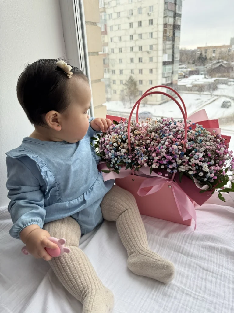 My daughter is 8.5 months old, height 71 cm, weight 8 kg. Bodysuit right away. The thread was a little. Of the shortcomings: the rubber bands came off on the sleeves, either they were sewn on or glued on, and part was also cut off. Not critical. Fast delivery, arrived by March 8th! Good quality, cotton for such a price.