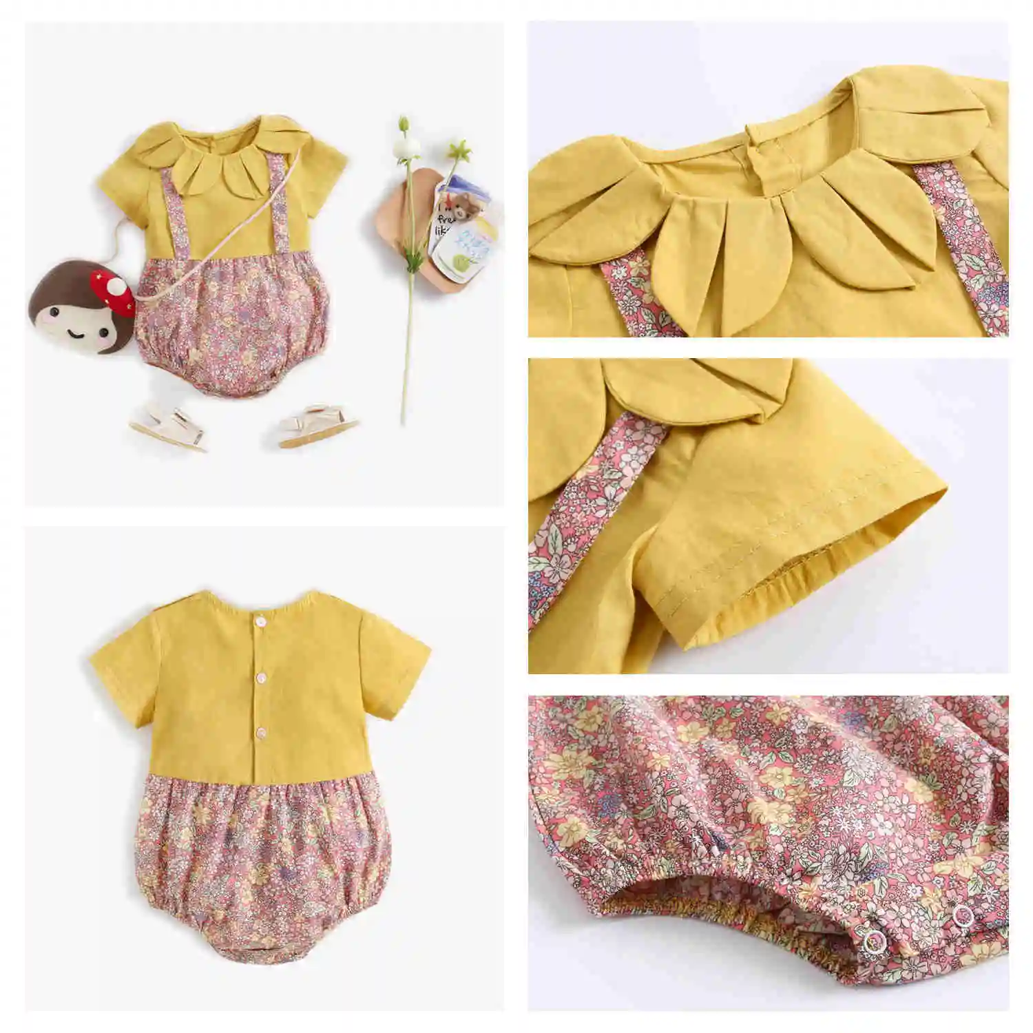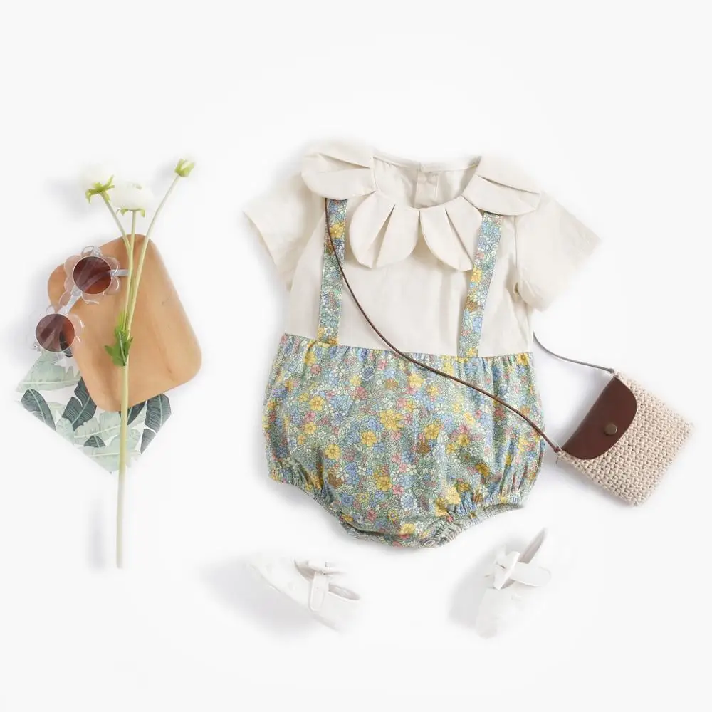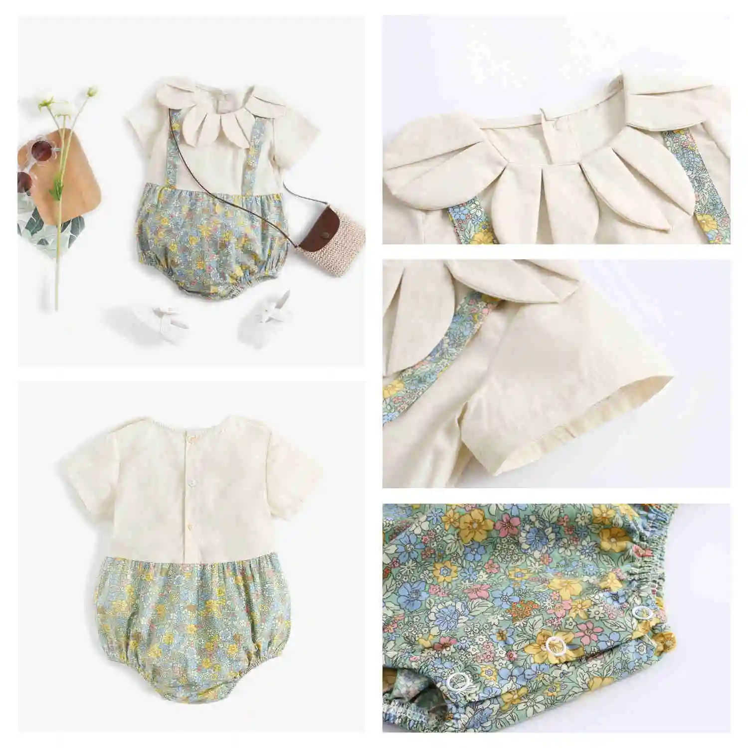 Sanlutoz Summer Baby Girls Bodysuits Cotton Baby Clothing Floral Sweet Short Sleeve Infants Onesies Casual