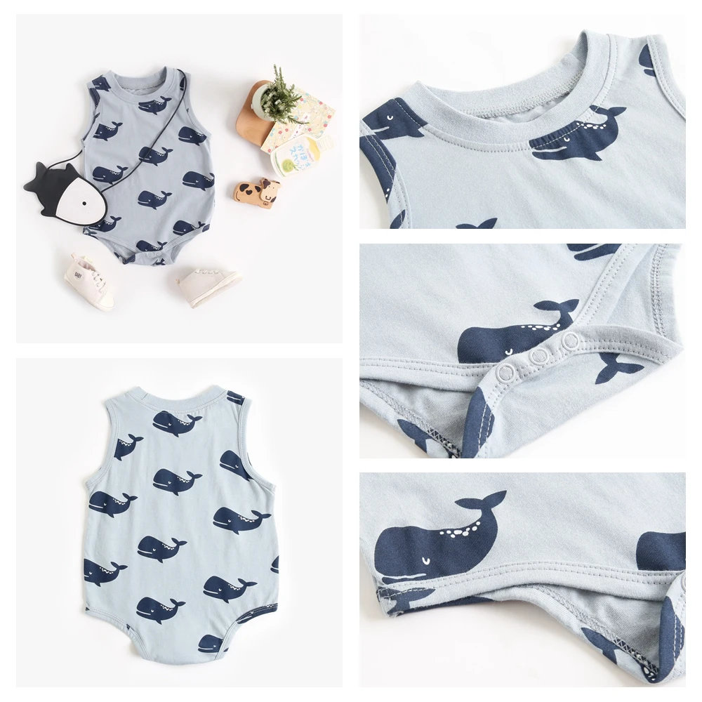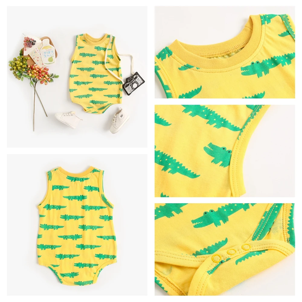 Sanlutoz Summer Cute Animal Baby Boys Sleeveless Bodysuits Cotton Toddler Boys Clothes