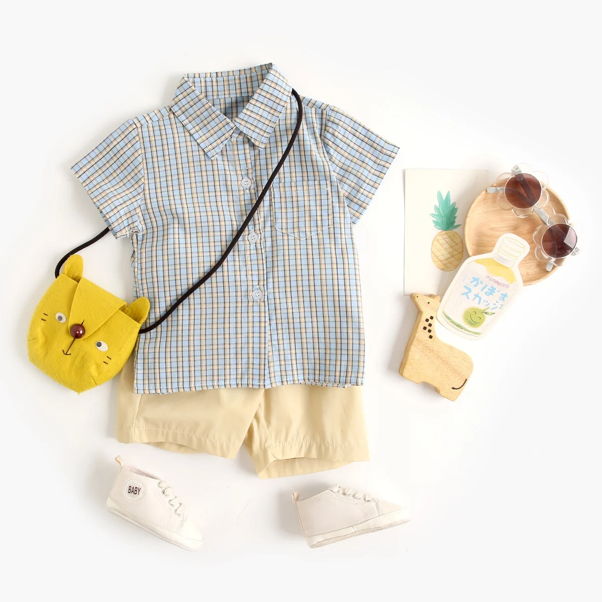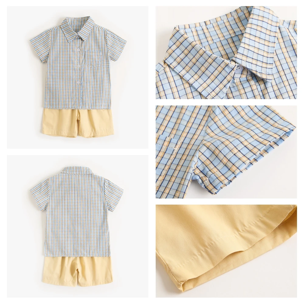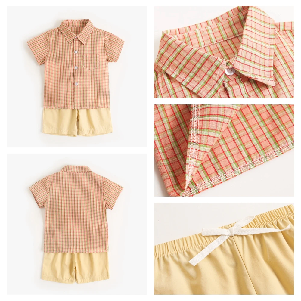 Sanlutoz Toddler Boys Clothing Sets Plaid Cotton Short Sleeve Baby Shirts + Shorts Casual 2pcs