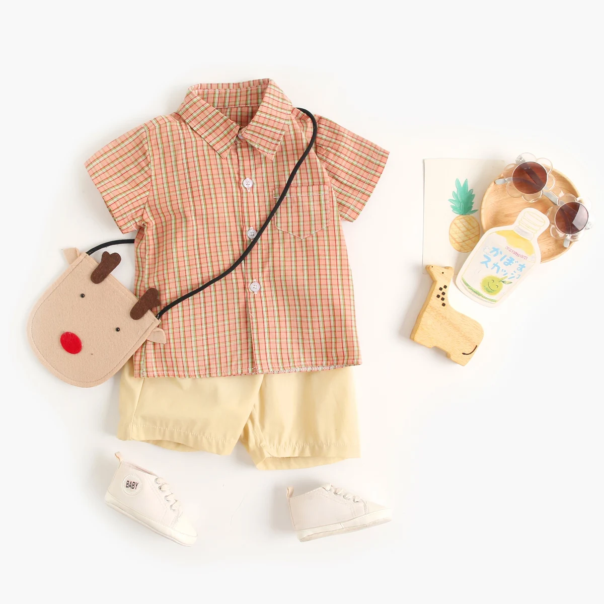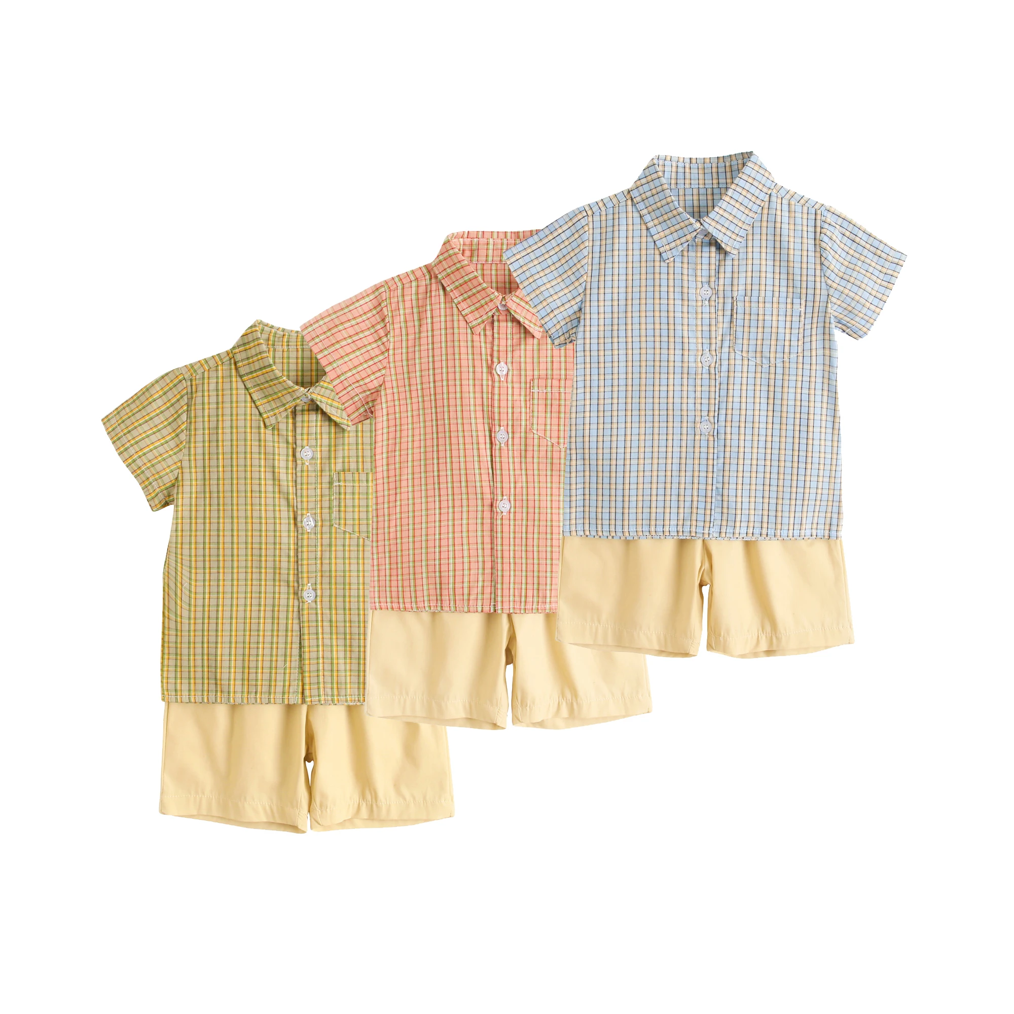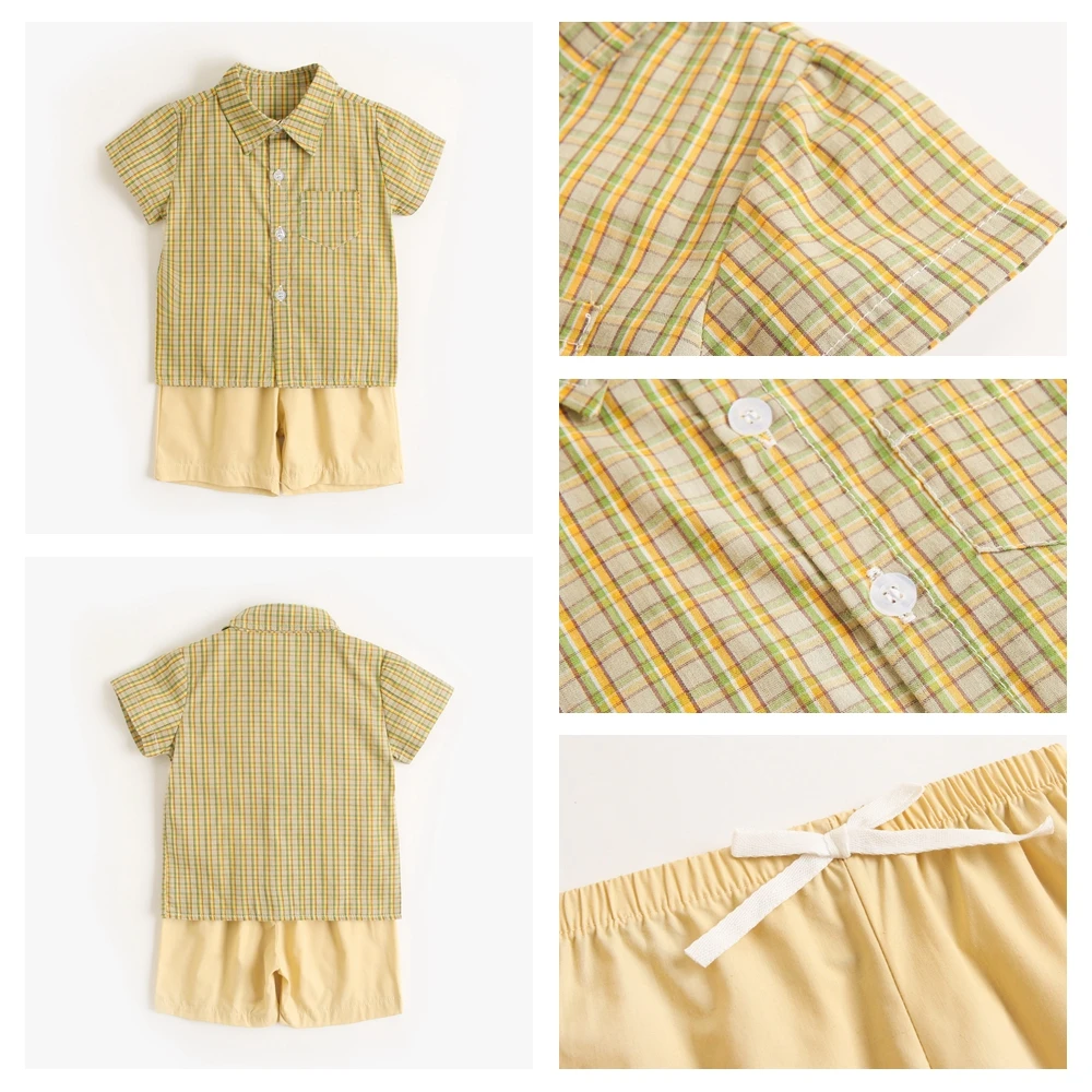 Sanlutoz Toddler Boys Clothing Sets Plaid Cotton Short Sleeve Baby Shirts + Shorts Casual 2pcs