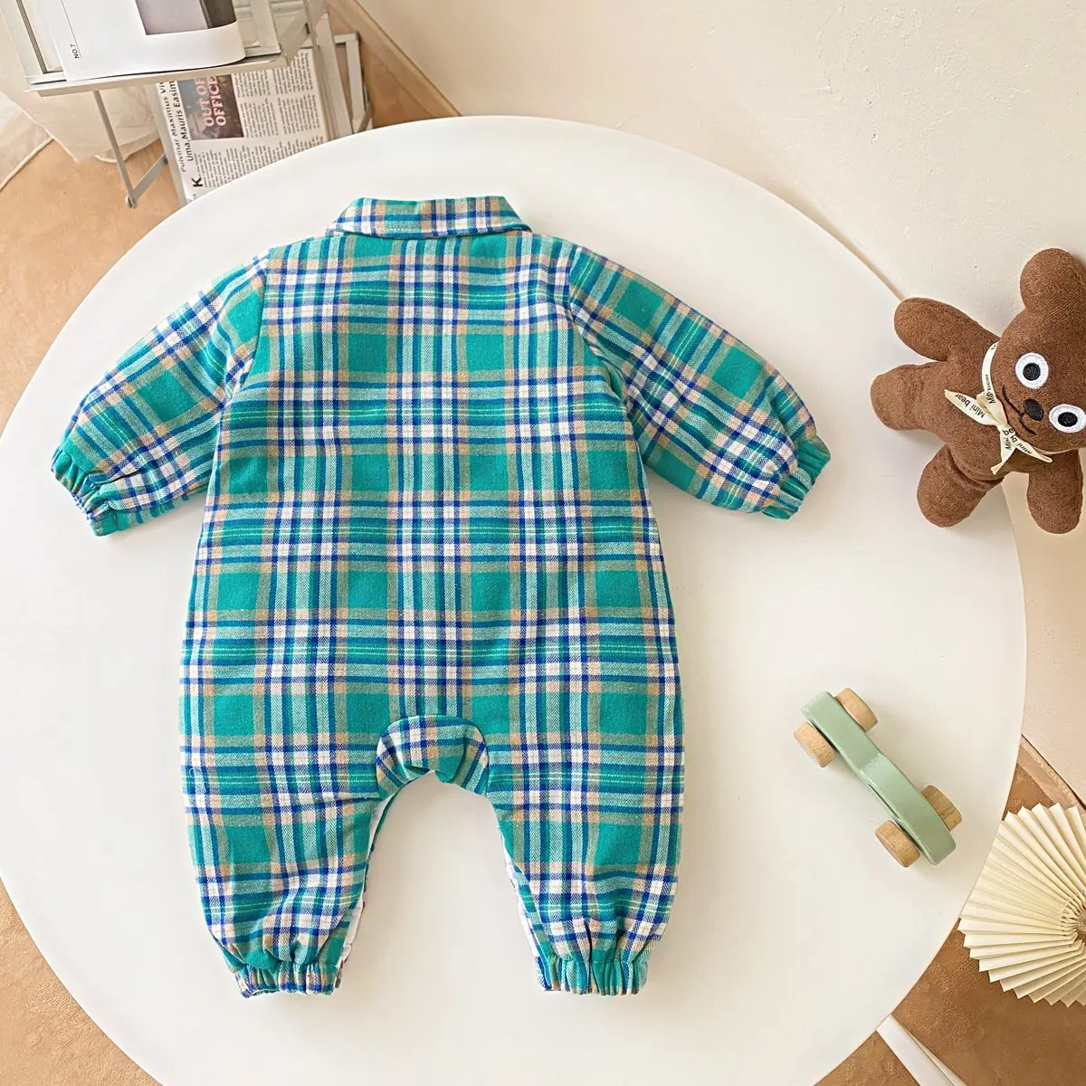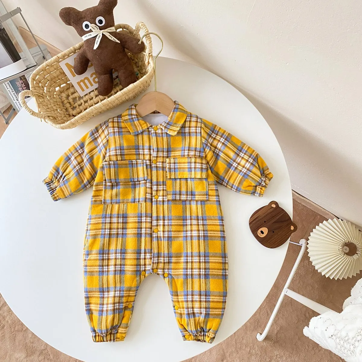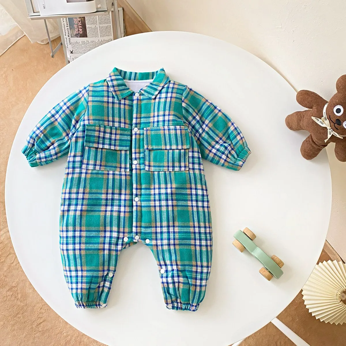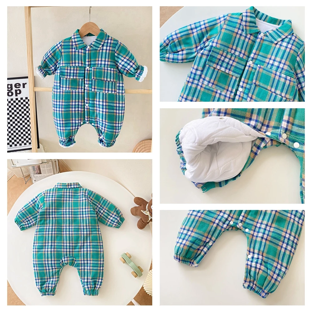 Warm Casual Long Sleeve Baby Boys Rompers Casual Plaid Winter Toddler Jumpsuits Clothing