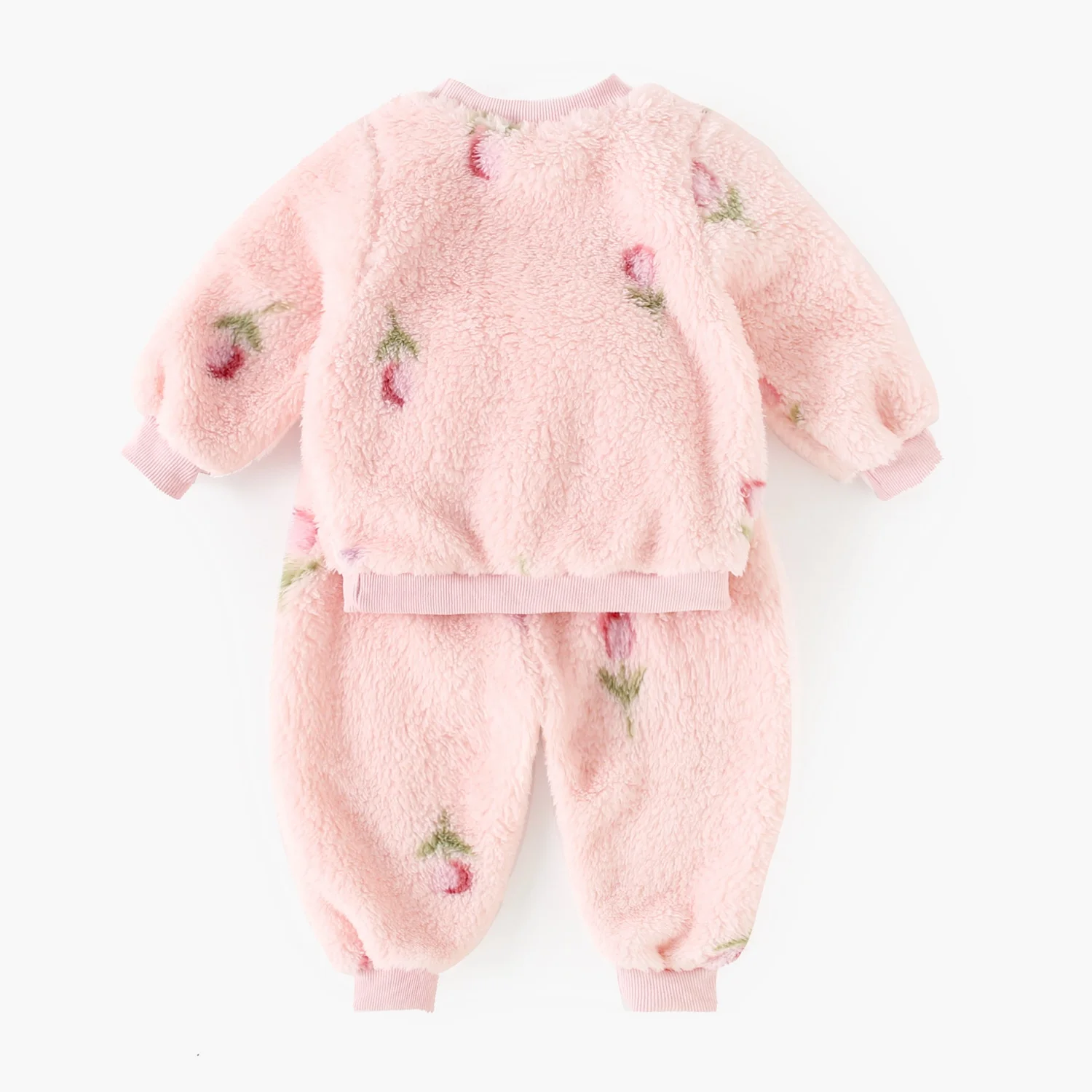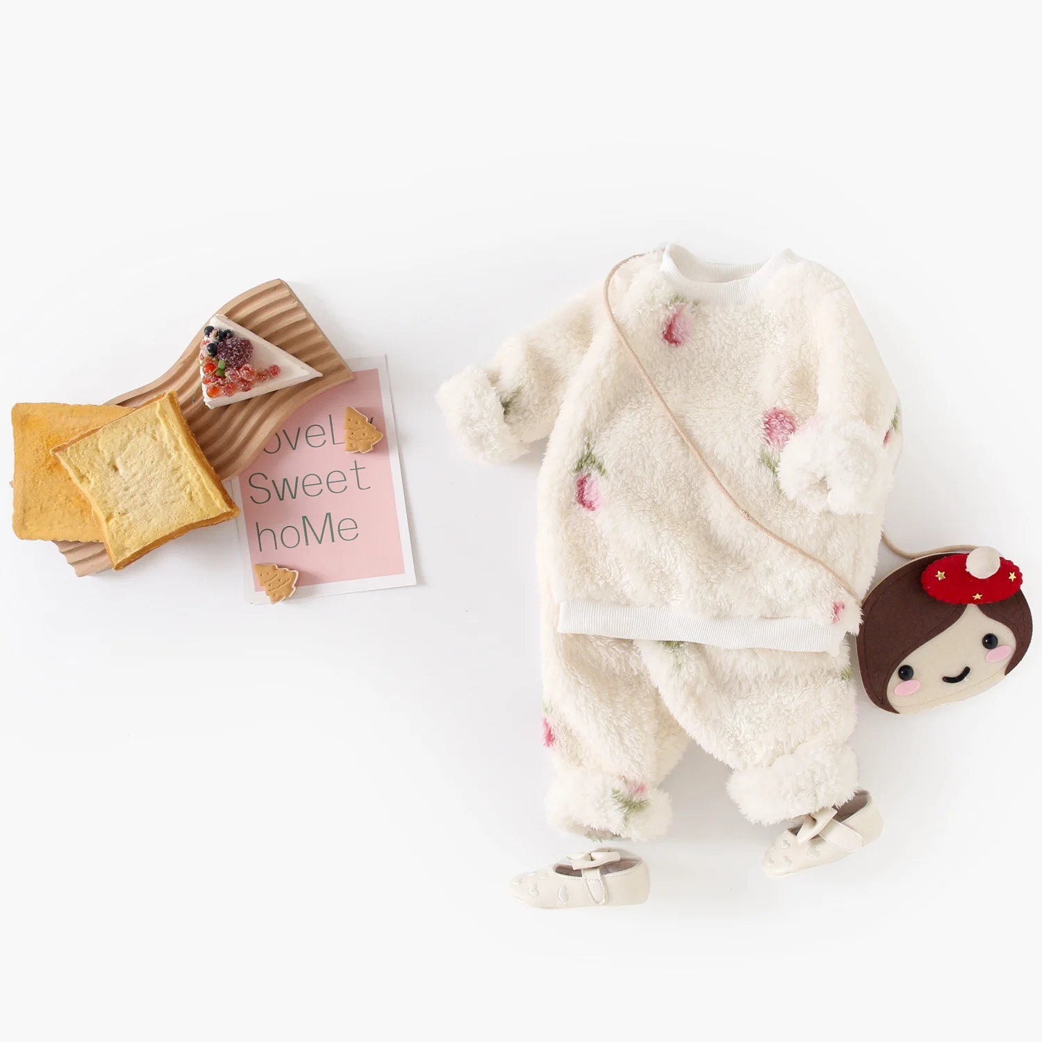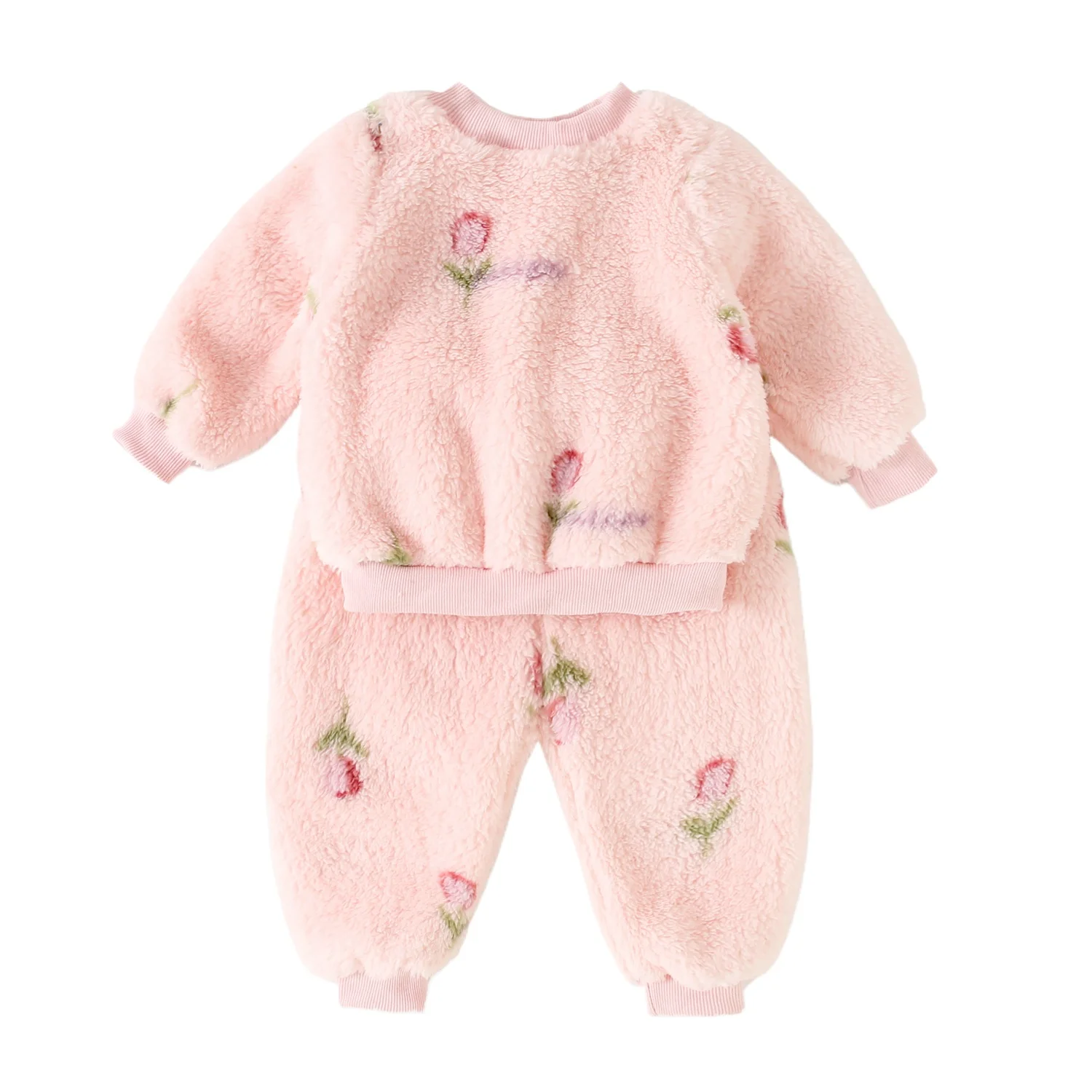 Sanlutoz Winter Warm Long Sleeve Little Kids Tops + Pants Cute Fleece Thickened Baby Outfits Sets Clothing