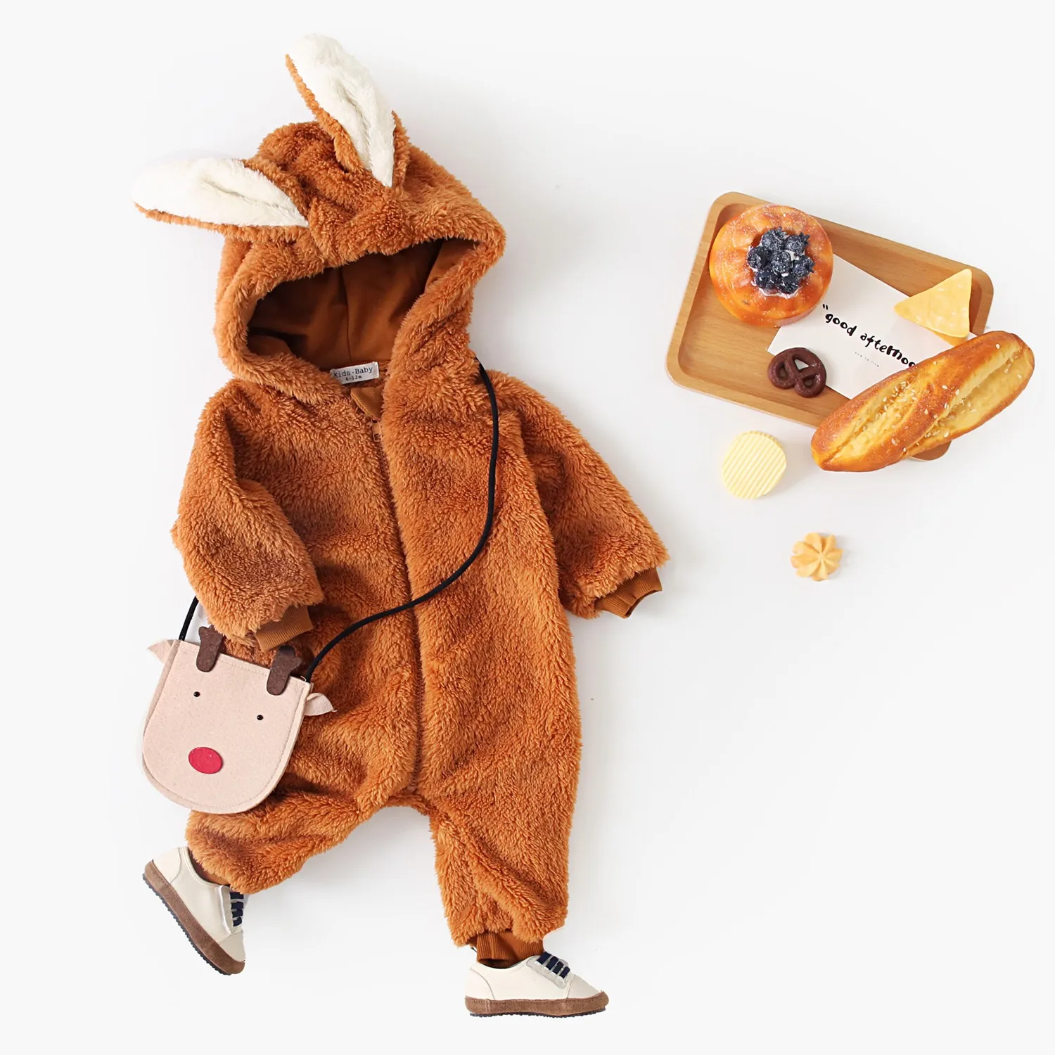 Sanlutoz Winter Warm Unisex Baby Rompers Cute Hooded Fleece Thickened Zipper Long Sleeve Toddler Jumpsuits Clothing
