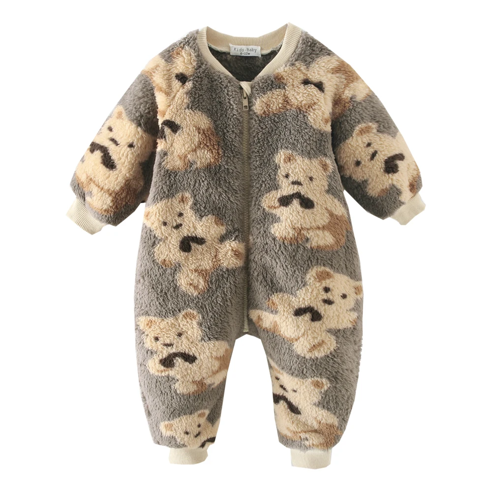 Sanlutoz Zipper Winter Baby Rompers Bear Fleece Thickened Long Sleeve Toddler Clothing Warm